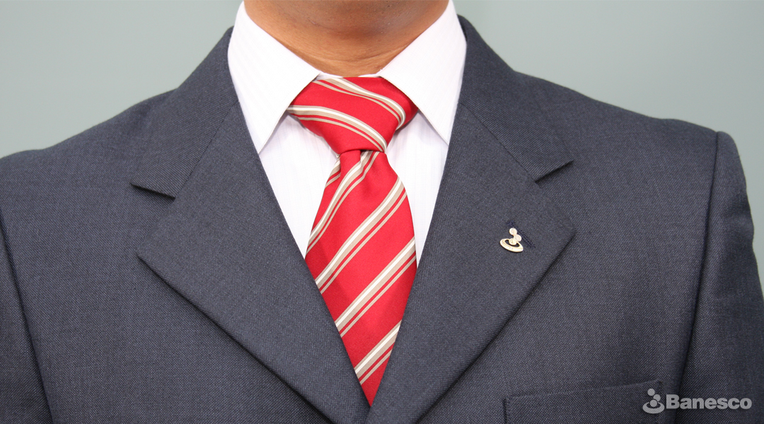 Botón distintivo del logo de Banesco Banco Universal, en metal dorado, para caballeros.