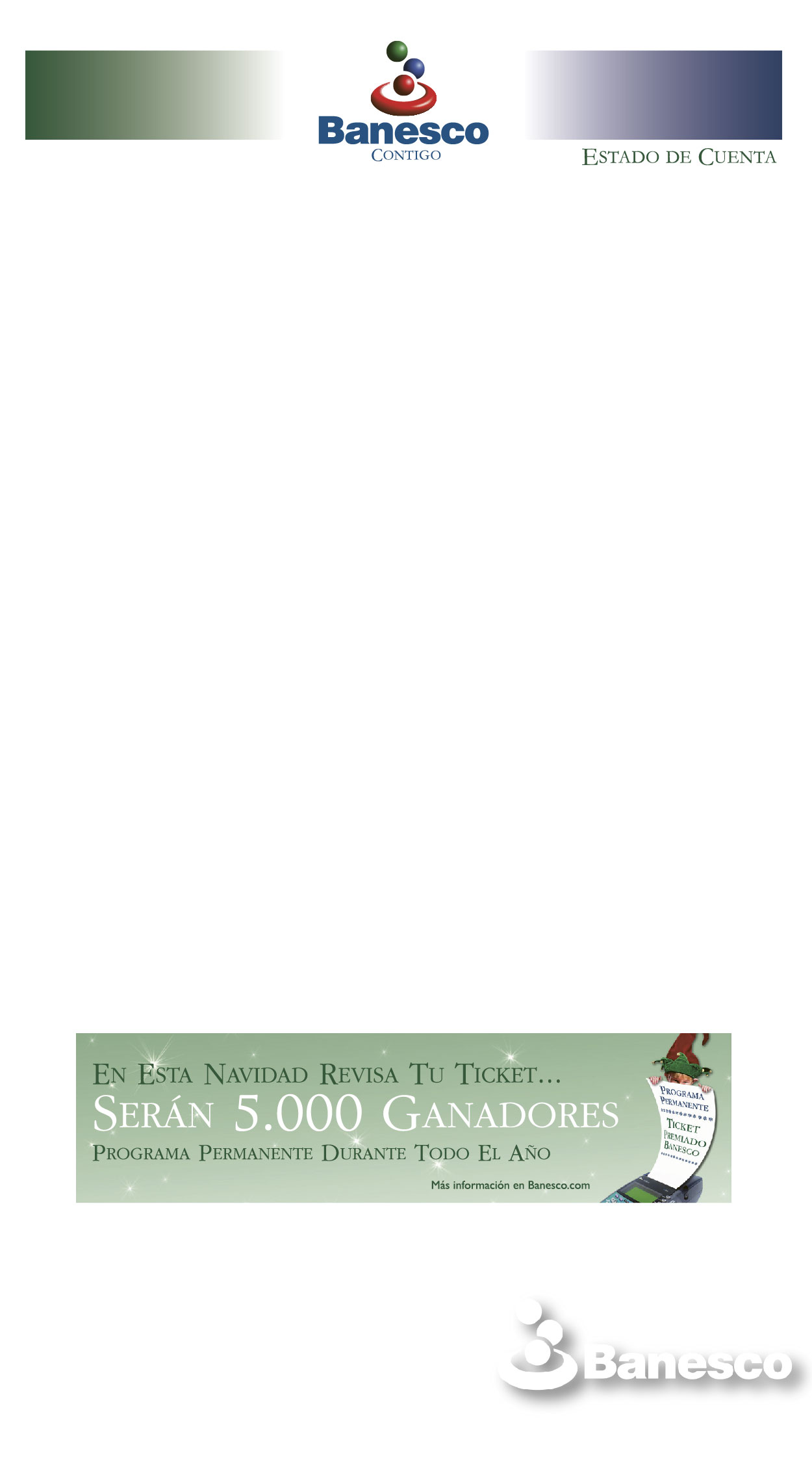 Estado de cuenta con la campaña publicitaria de Ticket Premiado titulada "En esta Navidad revisa tu ticket... serán 5.000 ganadores".