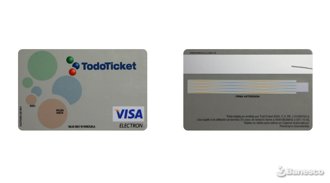 Modelo de Tarjeta TodoTicket Alimentación Visa Electrónica.