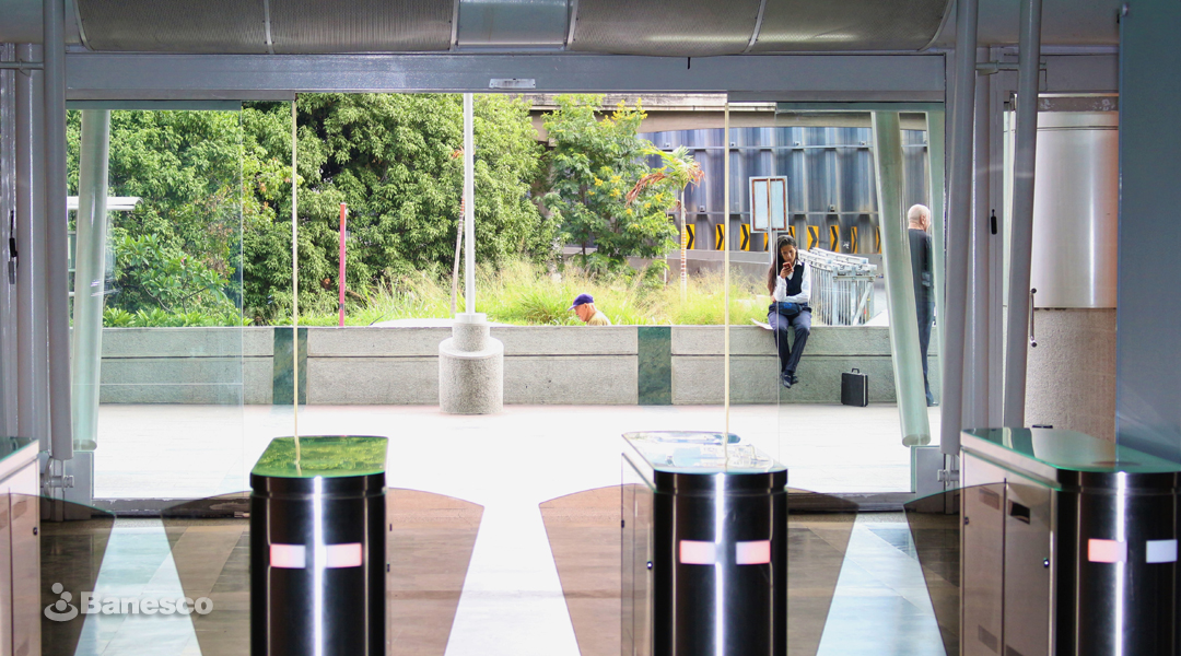 Toma interna de la Entrada principal de la Sede de Banesco Banco Universal, Ciudad Banesco, ubicada en Bello Monte. Vista Frontal.