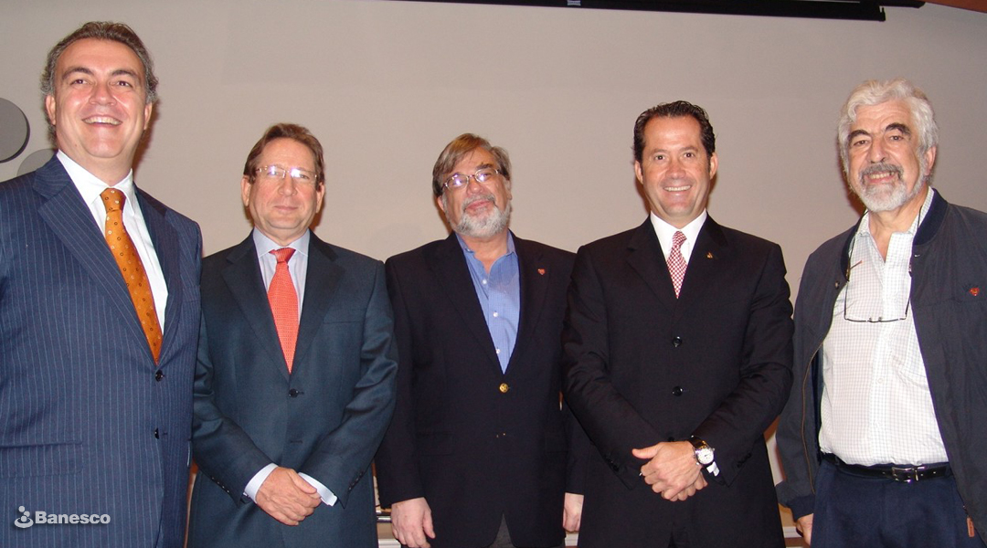 Manuel Aristorena S.J., Director Nacional de Fe y Alegría Venezuela; Juan Carlos Escotet Rodríguez, miembros de Fe y Alegría y Luis Xavier Luján (derecha a izquierda).