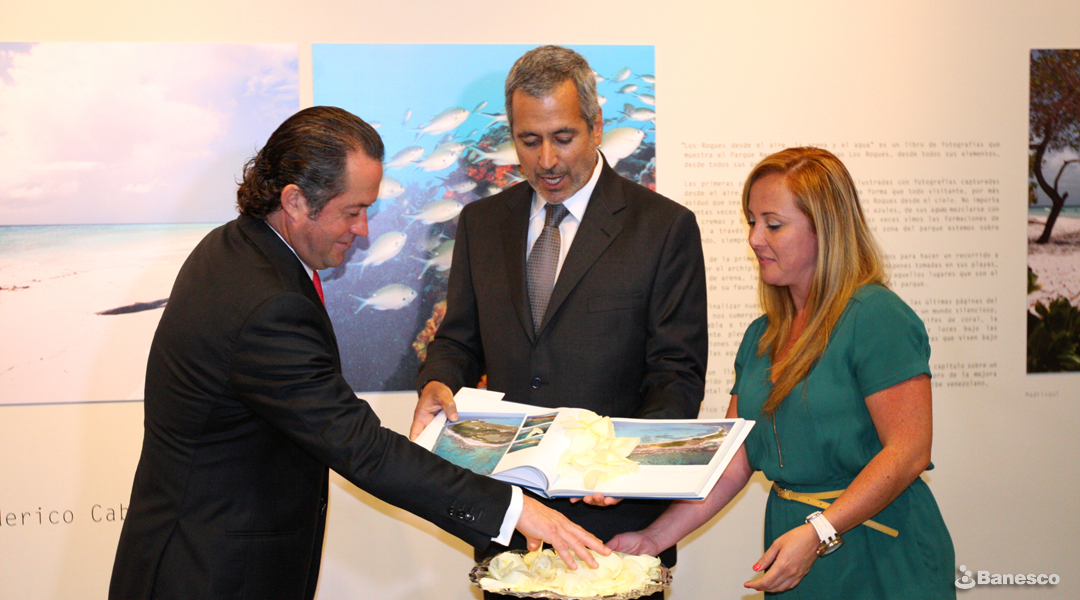 Juan Carlos Escotet y Federico Cabello, fotógrafo venezolano, encargado de ilustrar el libro: Los Roques desde el aire, la arena y el agua.