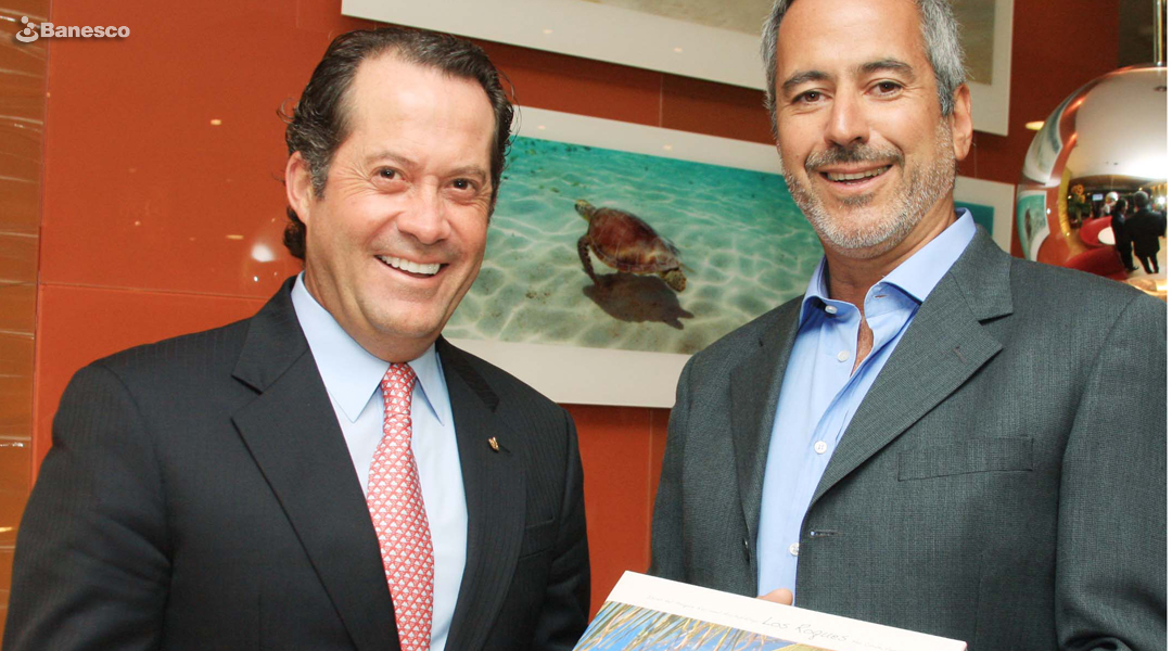 Juan Carlos Escotet Rodríguez y Federico Cabello, fotógrafo venezolano y autor del libro Los Roques desde el aire, la arena y el agua.