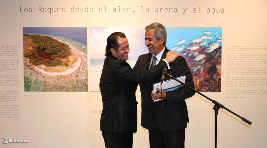 Juan Carlos Escotet Rodríguez y Federico Cabello, fotógrafo venezolano y autor del libro Los Roques desde el aire, la arena y el agua.