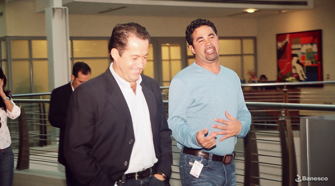 Juan Carlos Escotet Rodríguez y Oswaldo Guillén, beisbolista venezolano durante un recorrido por Ciudad Banesco.