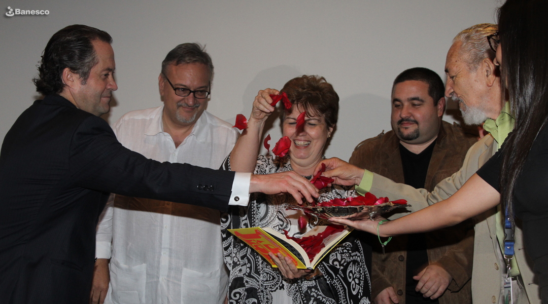 Juan Carlos Escotet Rodríguez y Mara Comerlati de Zapata, periodista y esposa del pintor, escritor, caricaturista y humorista venezolano, Pedro León Zapata durante el Bautizo del Libro "70 años de Humor en Venezuela".