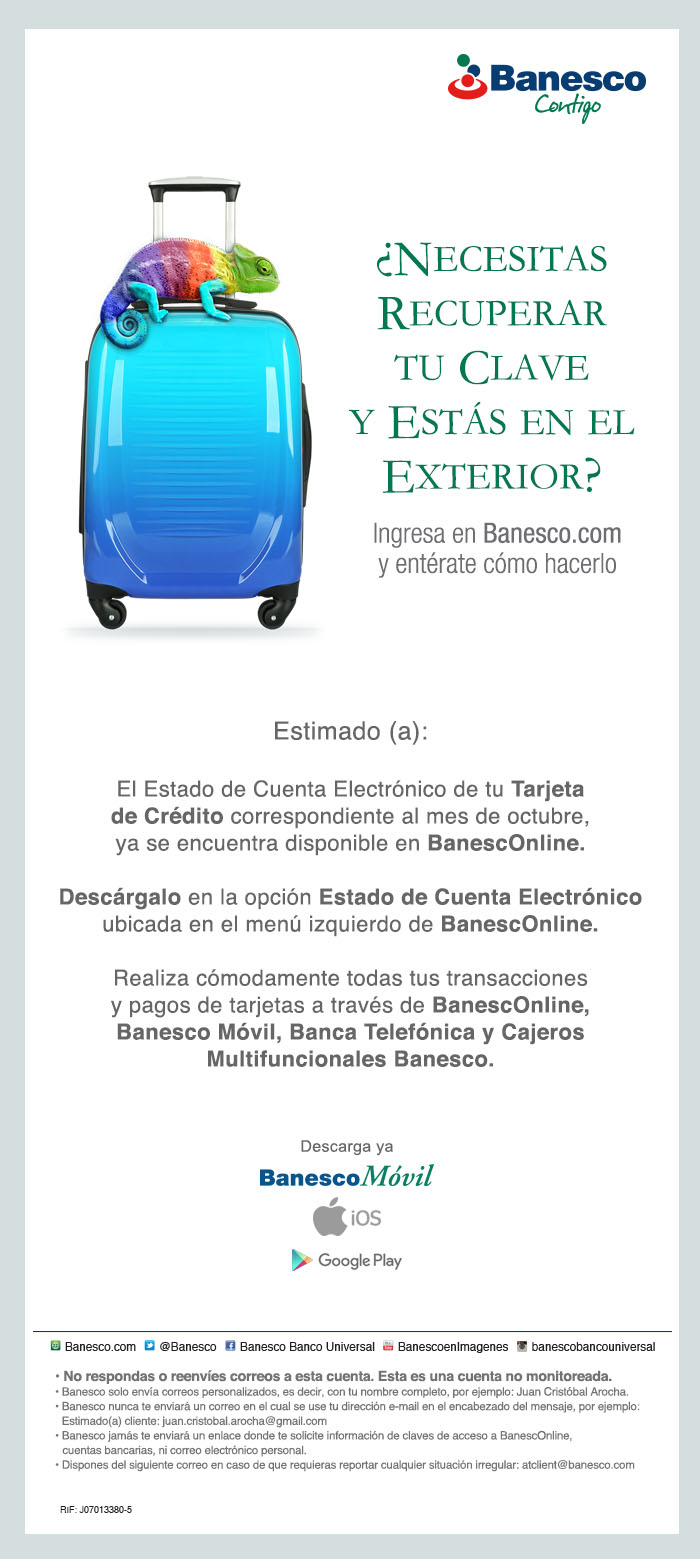 Mostrar a nuestros clientes que aún estando fuera del país puede recuperar su clave de banca digital.