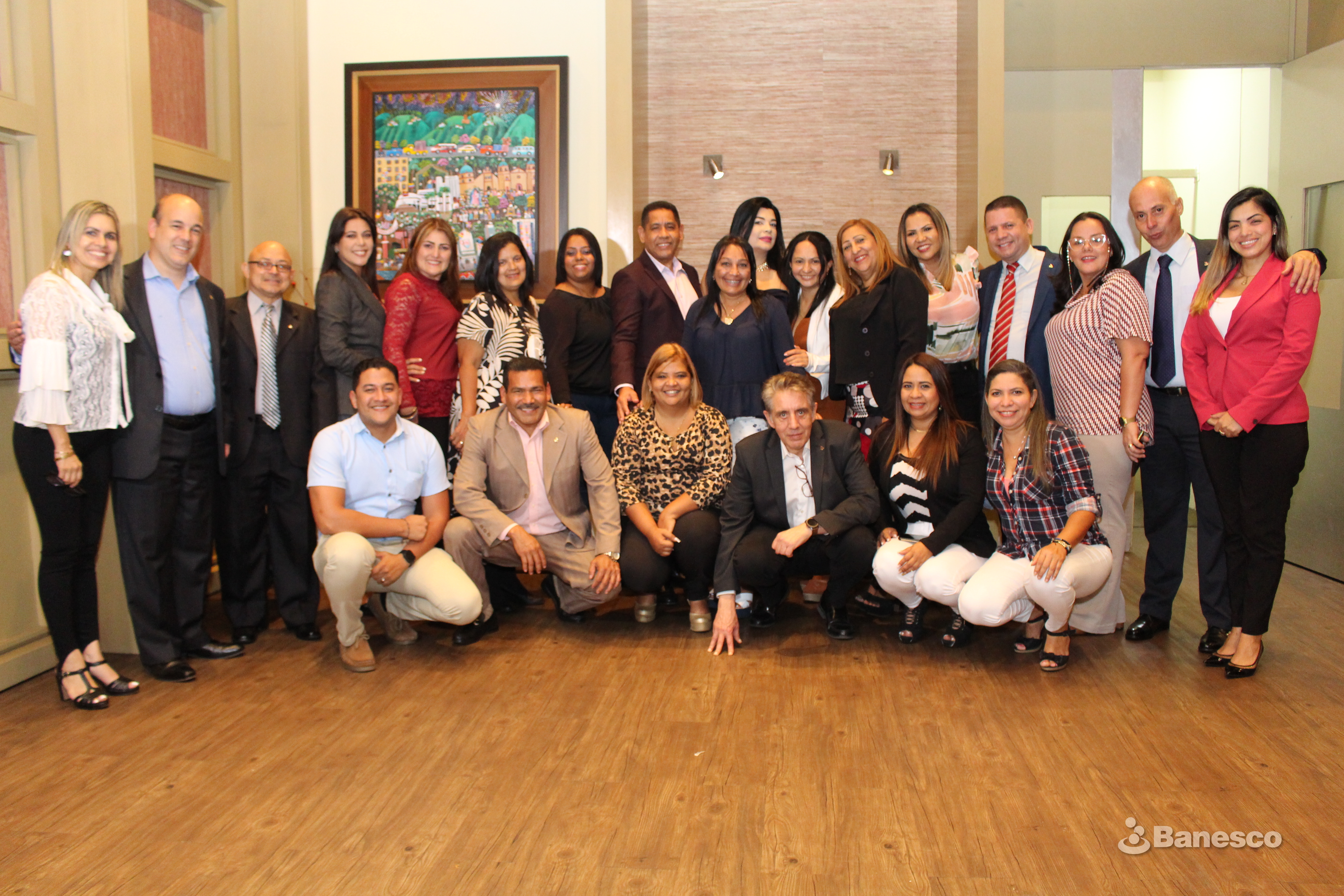 Carlos Lorenzo y Cesar Carrasquero con algunos miembros de Banesco Banco Valencia