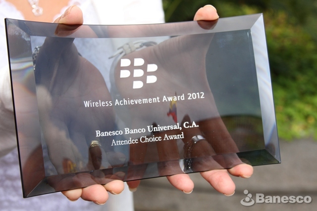 Reconocimiento a Banesco Banco Universal por su participación en la premiación Wireless Achievement Award 2012 de Blackberry, donde BanescoMóvil resultó premiada.