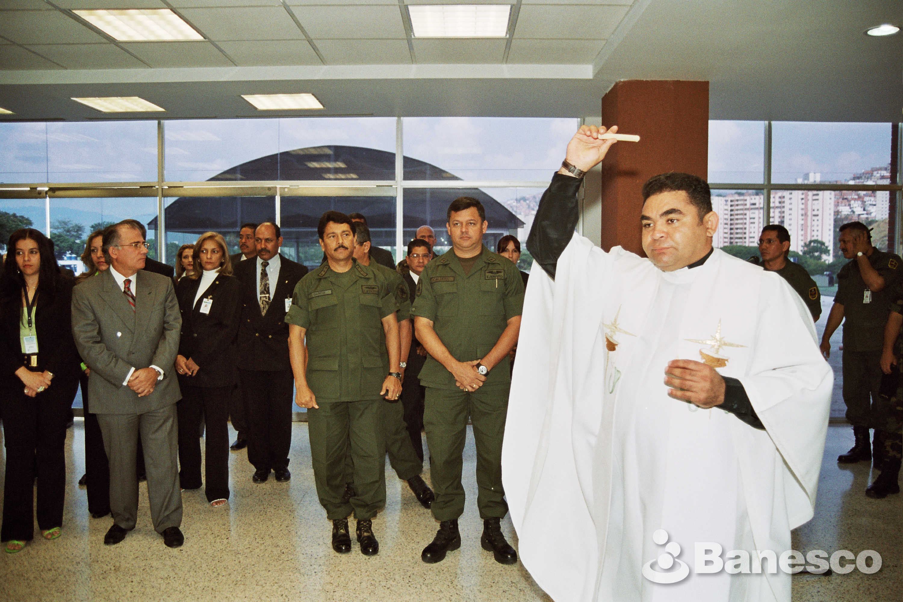Bendición del padre al momento de realizar la inauguración de la agencia.