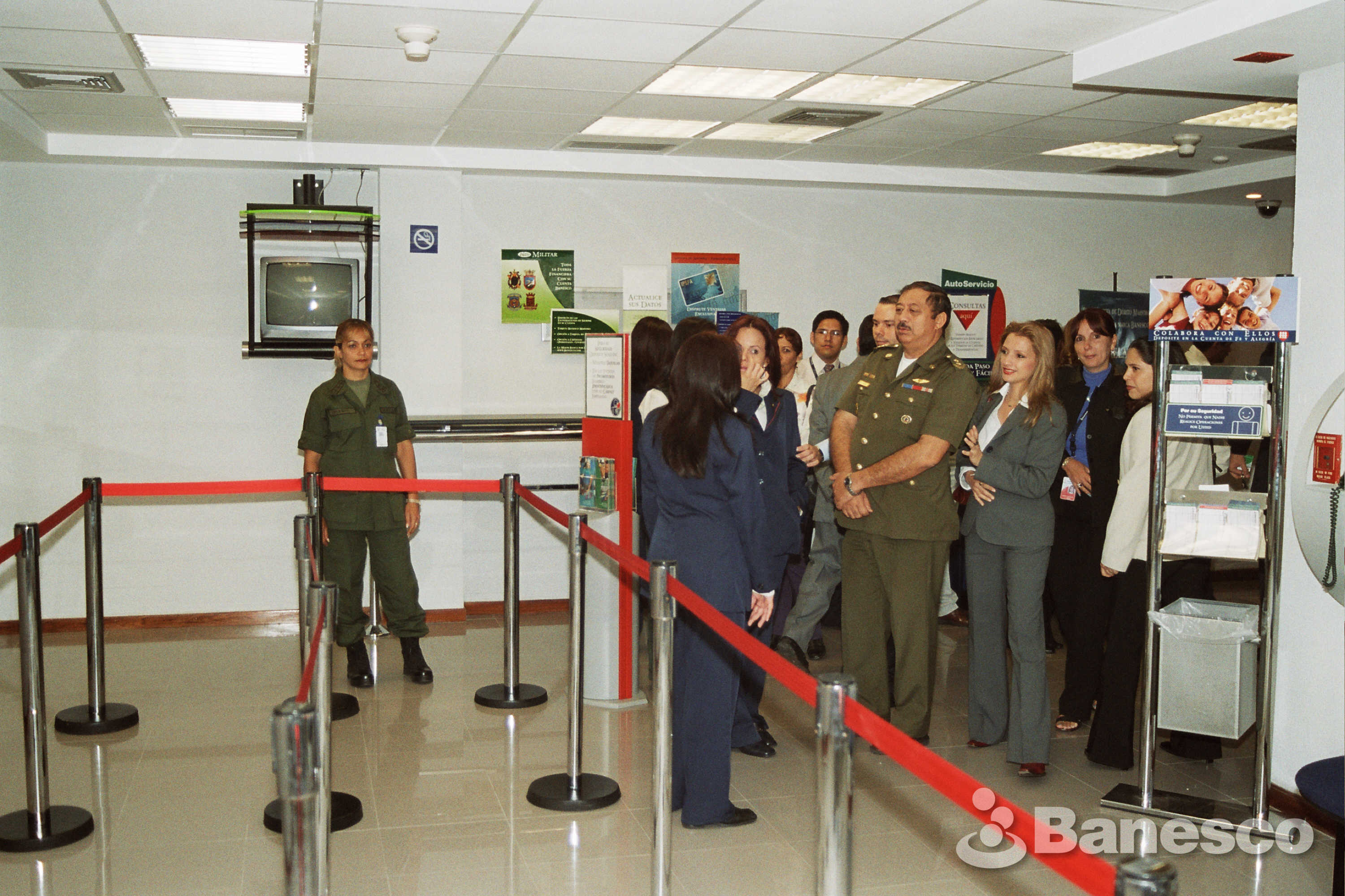 Grupo de colaboradores y clientes Banesco realizan el recorrido por las instalaciones de la nueva agencia ubicada en el IPSFA.
