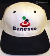 Gorra con corona blanca, visera negra y con el Logo Banesco en su presentación original.