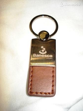 Llavero de metal con cuero, con Logo Banesco en blanco.