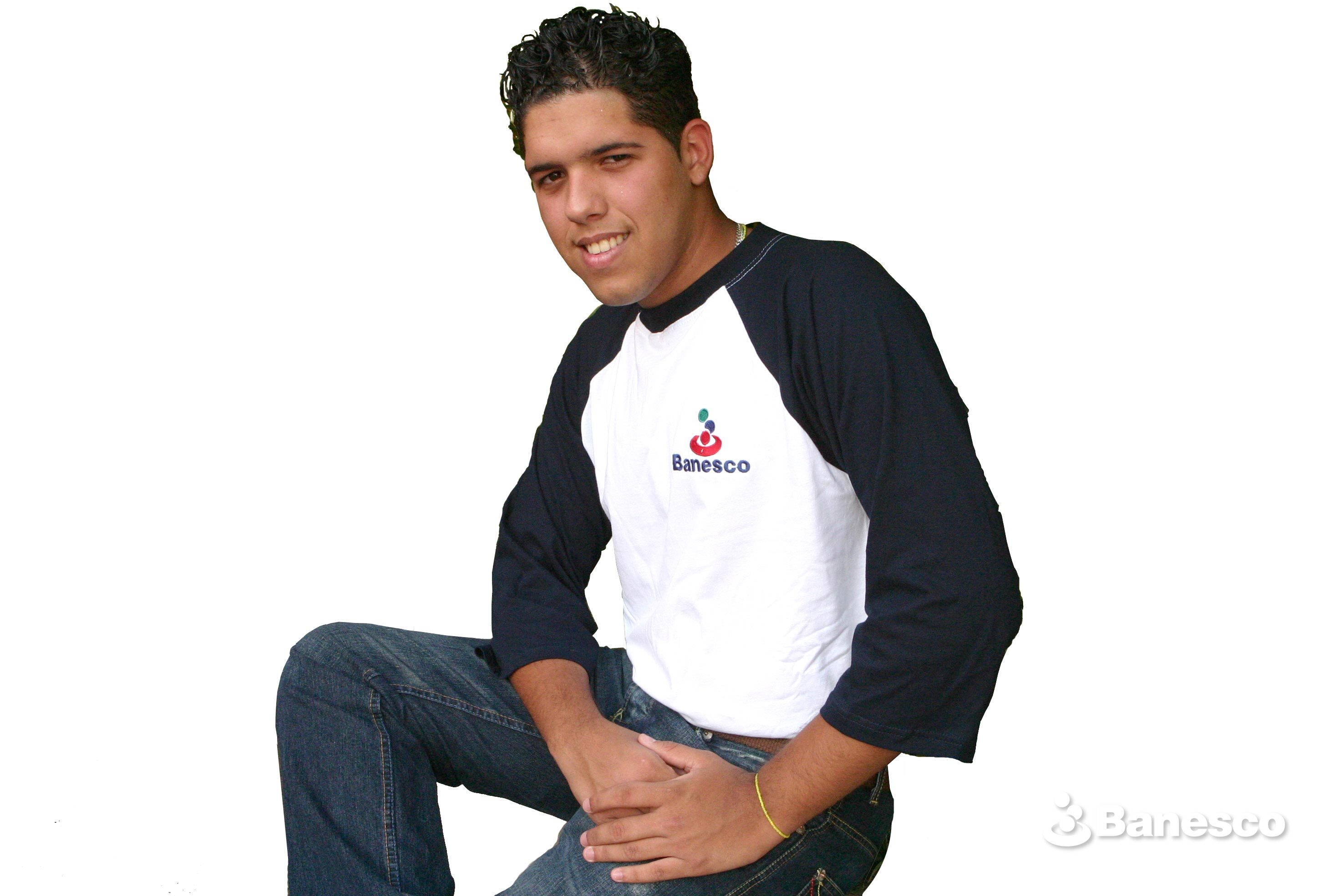 Franela tres cuartos, con mangas negras y torso blanco, con el Logo Banesco en la parte izquierda del pecho.