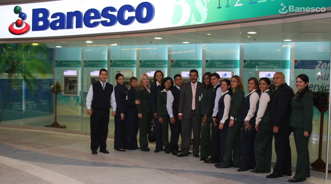 Grupo de Ciudadanos Banesco asignados a la primera agencia de Banesco en el Centro Comercial Líder durante su inauguración.