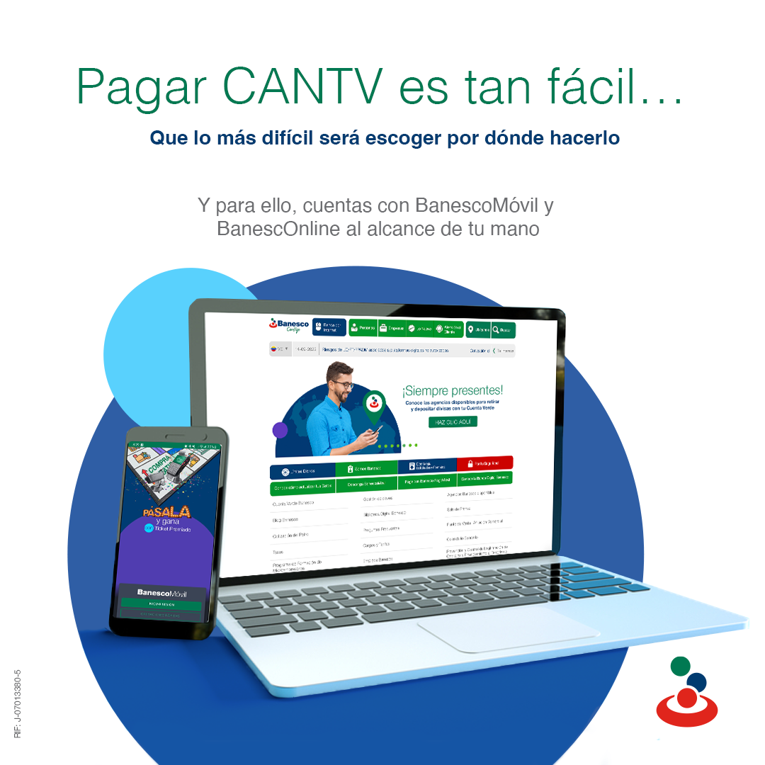 Pagar CANTV es más fácil, dificil es escoger por dónde hacerlo porque para ello, cuentas con BanescoMóvil y BanescOnline al alcance de tu mano.