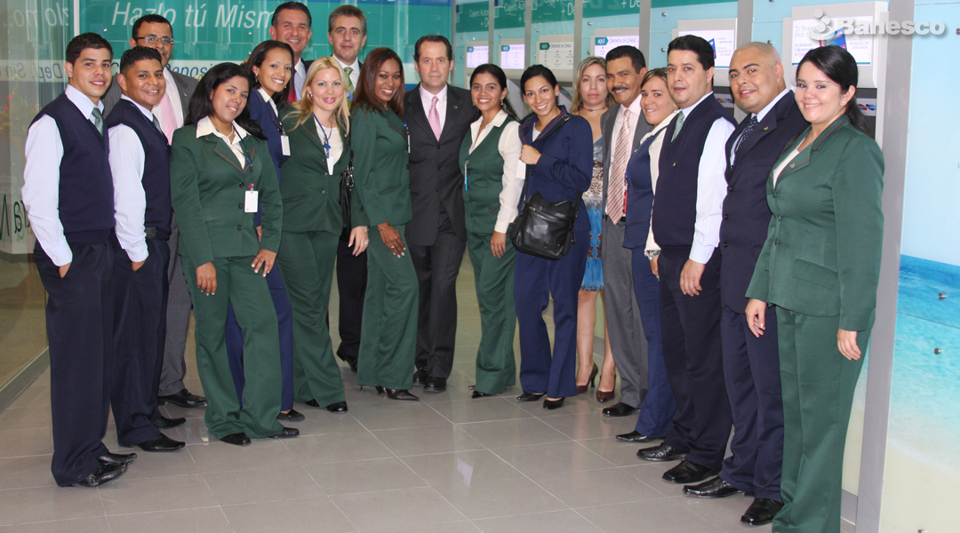 Grupo de Ciudadanos Banesco asignados a la primera agencia de Banesco en el Centro Comercial Líder durante su inauguración.