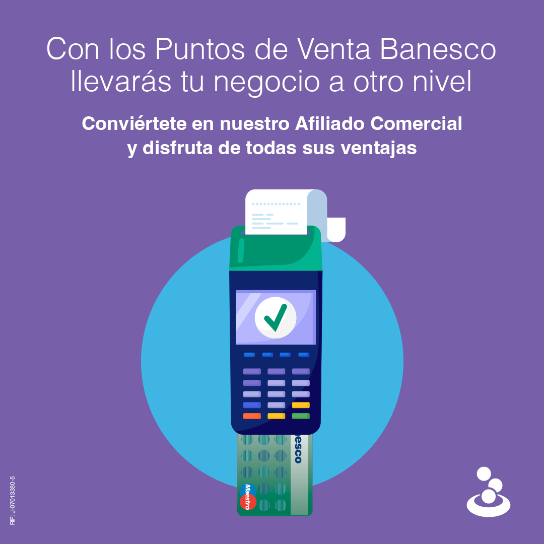 Con los Puntos de Venta Banesco llevarás tu negocio a otro nivel, conviértete en nuestro Afiliado Comercial y disfruta de todas sus ventajas.