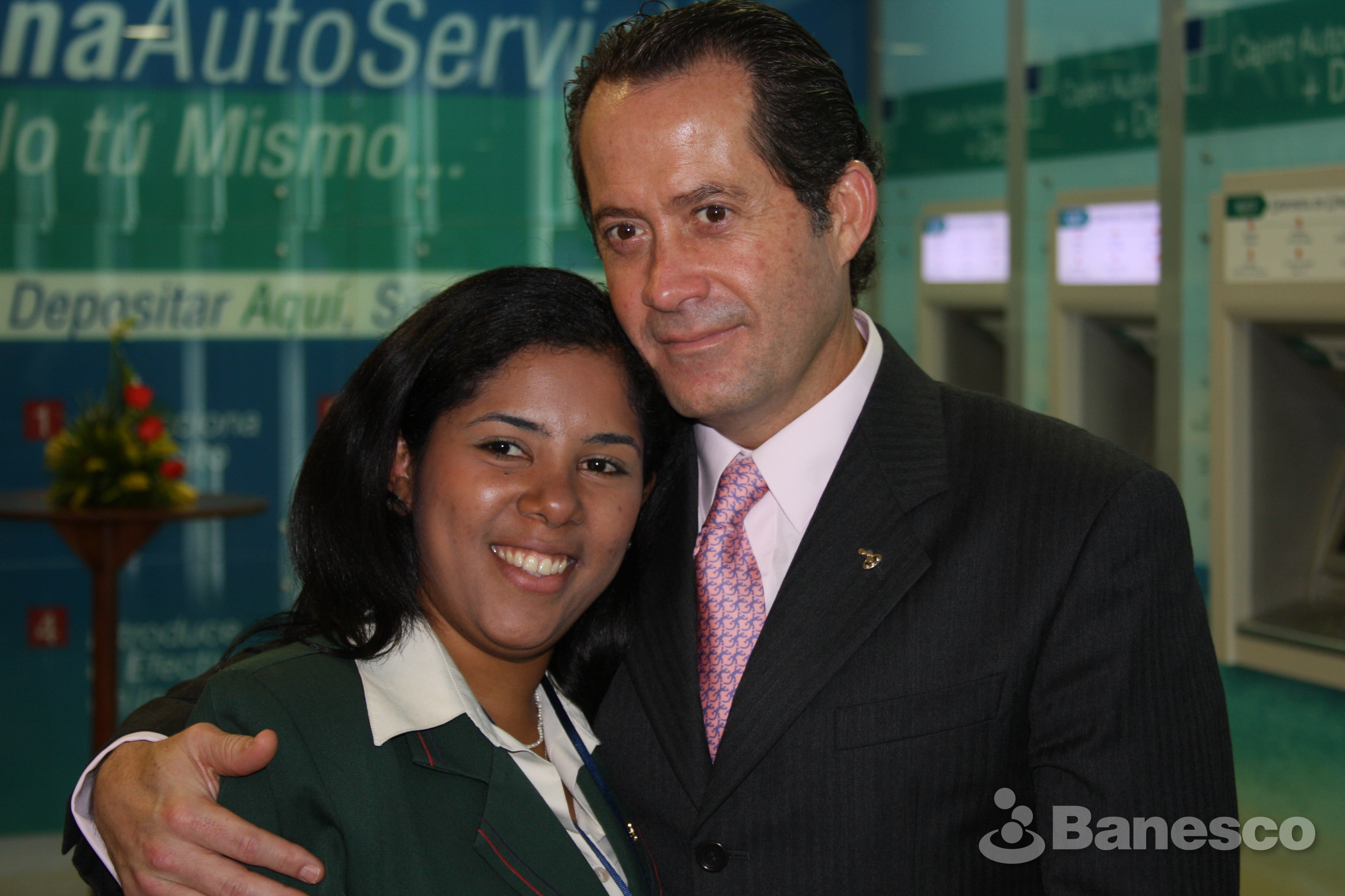 Juan Carlos Escotet y Colaboradora Banesco disfrutando del evento con motivo de la inauguración de la agencia del Centro Comercial Líder, ubicada en la ciudad de Caracas.