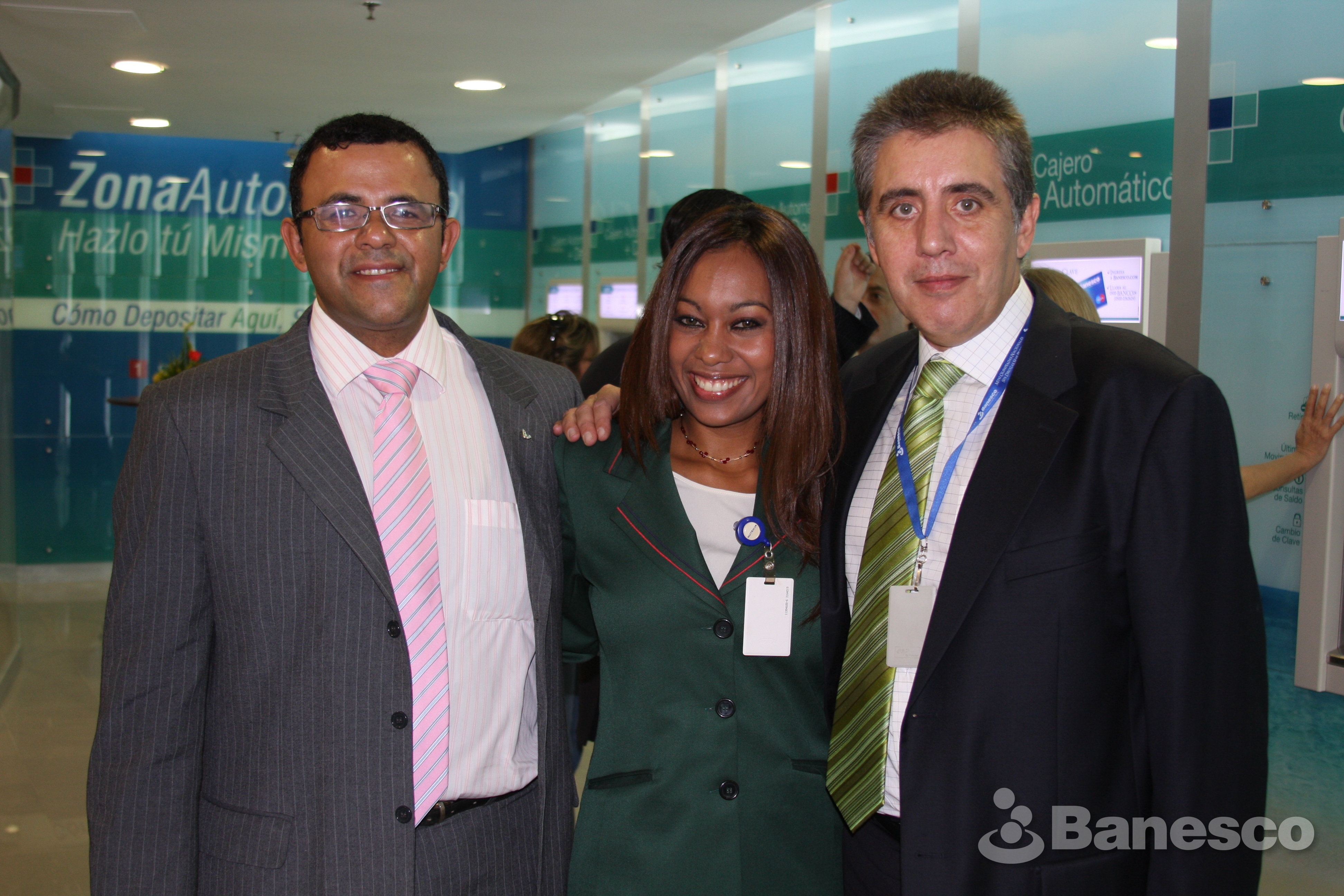 Ciudadanos Banesco y Carlos Lorenzo en la inauguración de la agencia ubicada en el Centro Comercial Líder, en la ciudad de Caracas.
