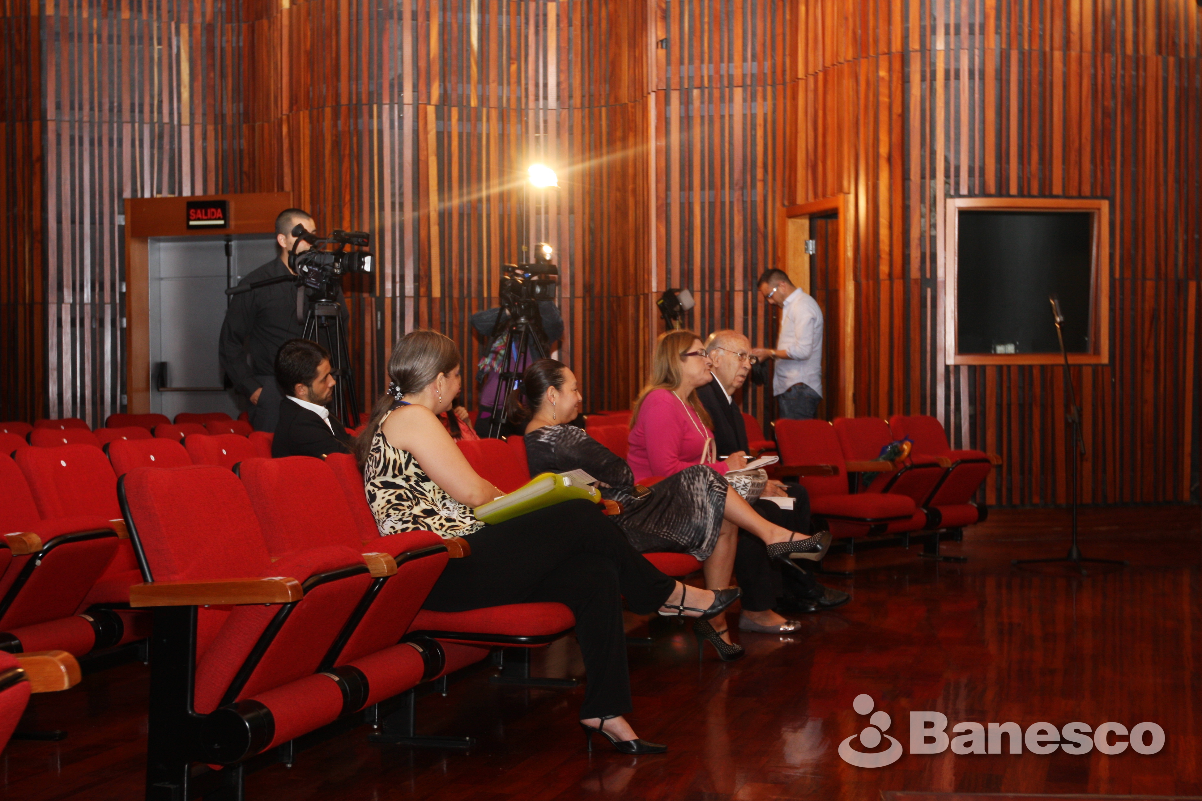 Equipo de la VP de Comunicaciones junto a Carlos Eduardo Escotet, escuchan atentamente las palabras de Santiago Bilinkis en rueda de prensa realizada en el auditorio de Ciudad Banesco.