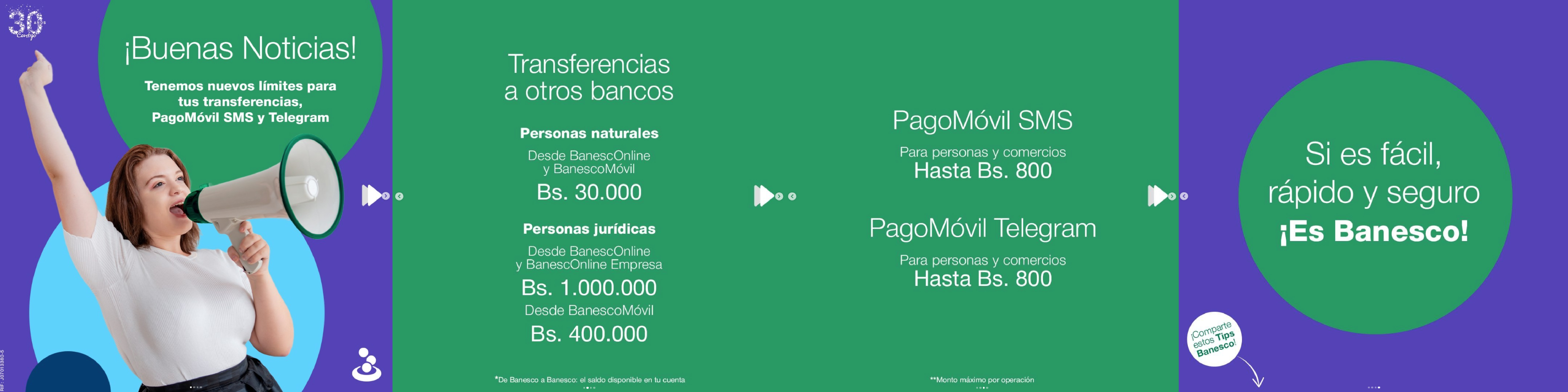 Aumentamos los límites diarios para Transferencias Interbancarias a través de tus canales #BanescOnline, #BanescoMóvil y #PagoMóvil SMS y Telegram.