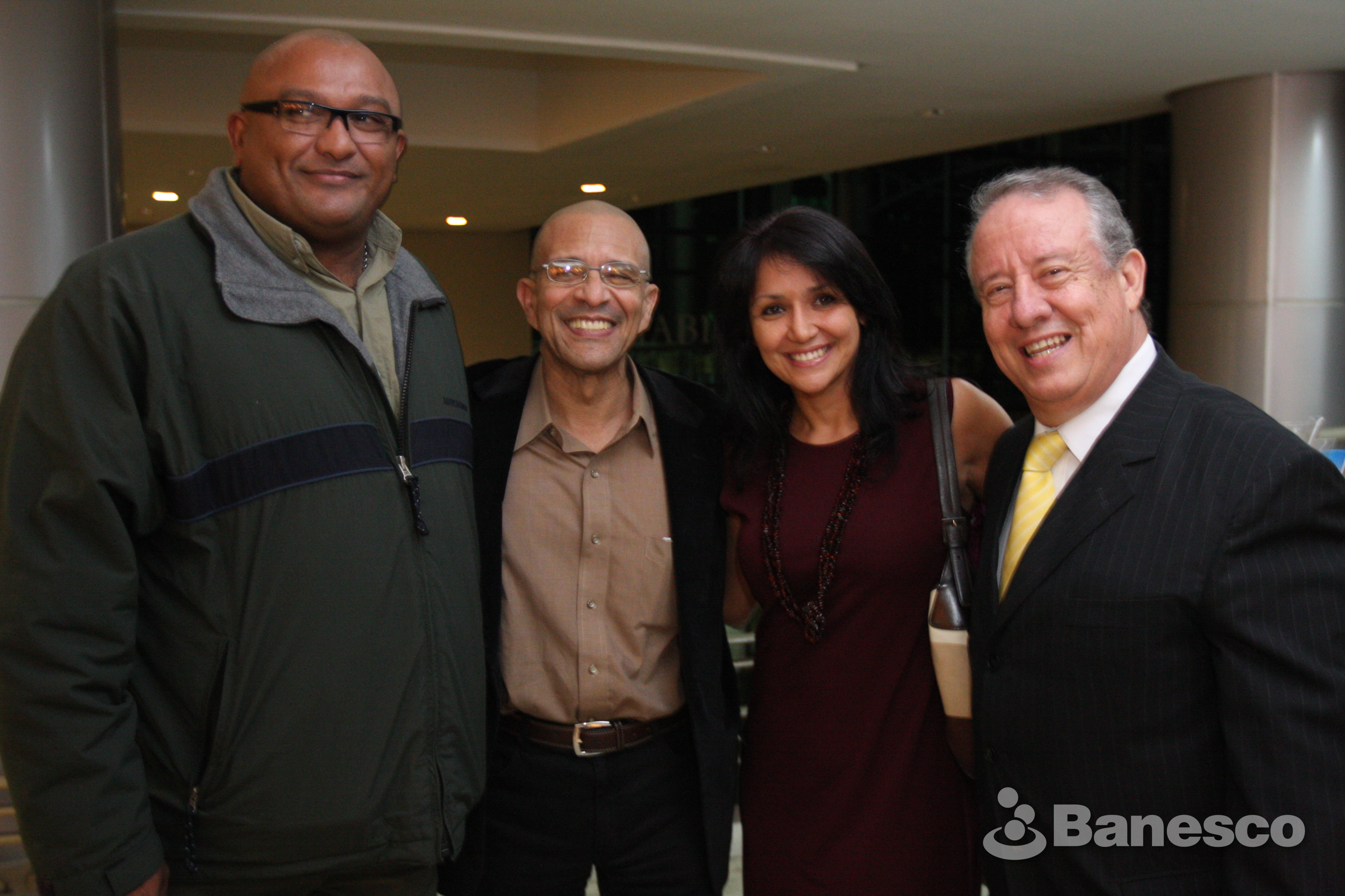 Humberto Acosta y José Visconti junto a invitados especiales, al finalizar el acto de presentación del libro Zurdo contra Zurdo del escritor Humberto Acosta. Evento presentado en el auditorio Fernando Crespo Suñer de Ciudad Banesco en la ciudad de Caracas.