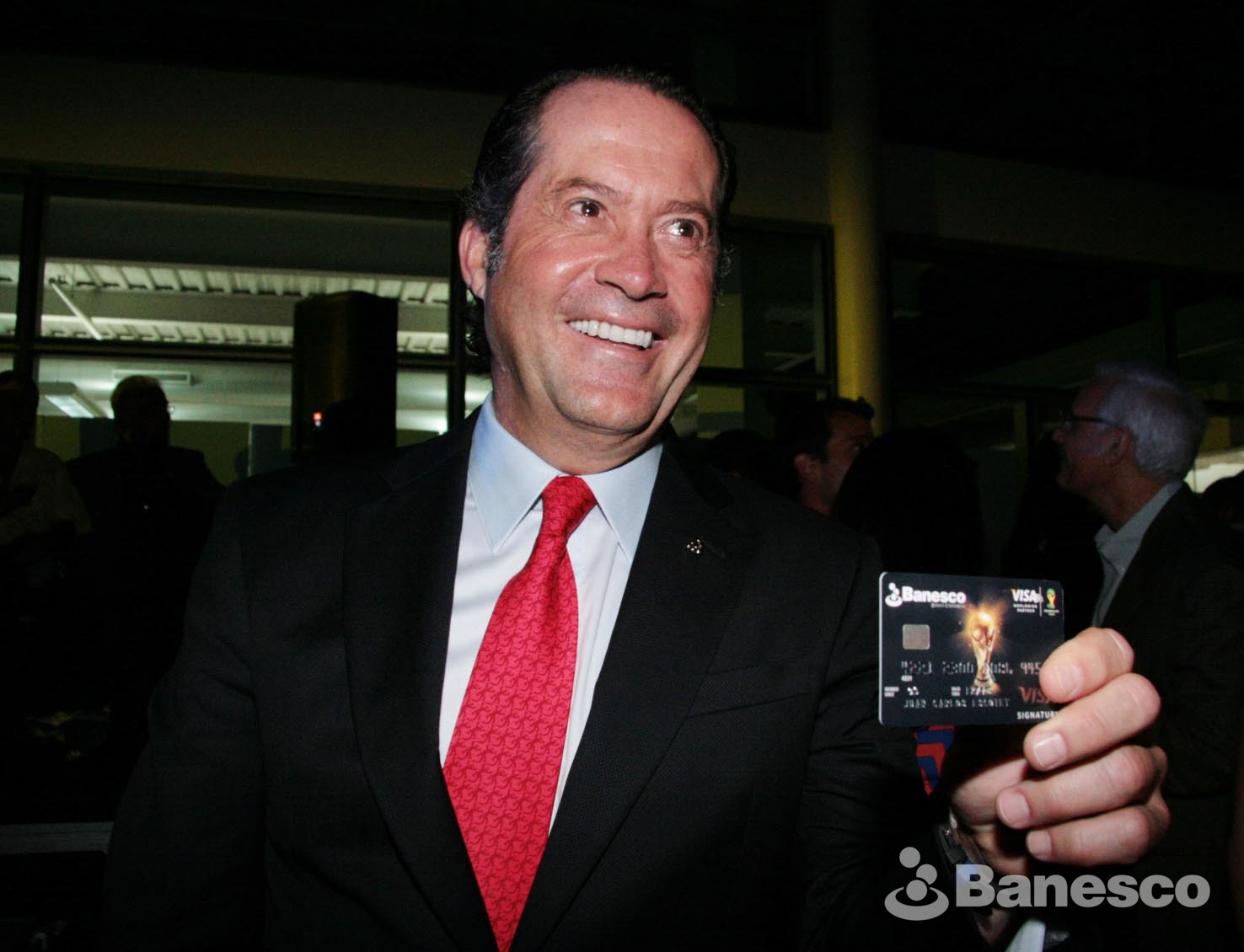 Juan Carlos Escotet muestra la nueva Tarjeta de Colección Banesco VISA Copa Mundial de la FIFA 2014, durante el evento con motivo de su lanzamiento realizado en las instalaciones de Ciudad Banesco.