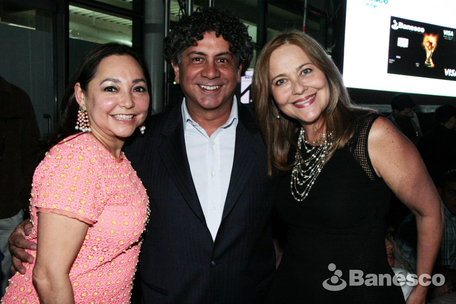 Mariela Colmenares, Daniel Álvarez junto a Flor Alicia Anzola disfrutando del evento con motivo del lanzamiento de la nueva Tarjeta de Colección Banesco VISA Copa Mundial de la FIFA 2014, realizado en Ciudad Banesco.