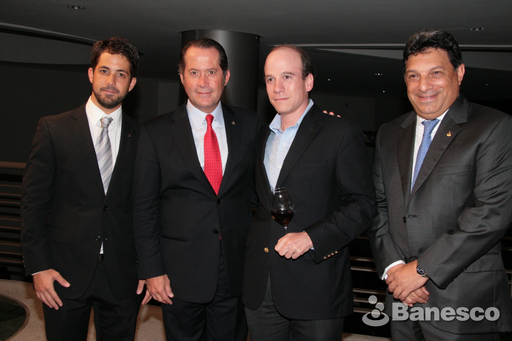 Carlos Eduardo Escotet Alviárez, Juan Carlos Escotet Rodríguez, Rodrigo Ánzola Díaz e invitado durante la presentación de la tarjeta de crédito de colección “Banesco VISA Copa Mundial de la FIFA 2014”, evento realizado en las instalaciones de Ciudad Banesco.