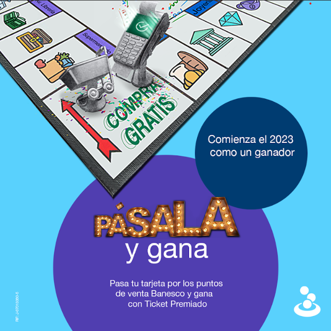 Comienza el 2023 como un ganador, pásala y gana. Pasa tu tarjeta por los puntos de venta Banesco y gana con Ticket Premiado