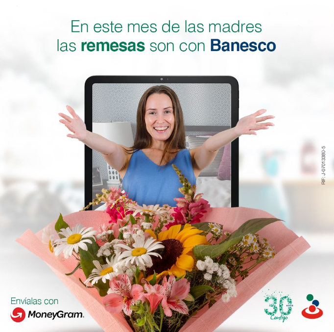 ¡Este es el mes de mamá! Consiéntela enviando remesas directo a su cuenta Banesco a través moneygram. Siente la confianza, el respaldo y la garantía que siempre te hemos ofrecido.