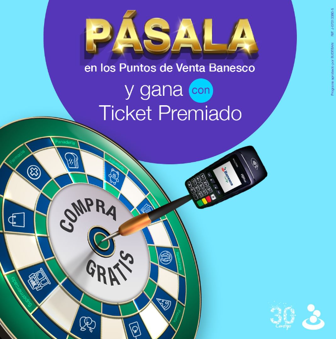 Cada vez que utilices tu Tarjeta de Débito Banesco , Tarjeta todoticketvzla o Tarjeta de Crédito de cualquier banco en los puntos de venta Banesco, tendrás la oportunidad de que tu compra te salga ¡Completamente gratis!