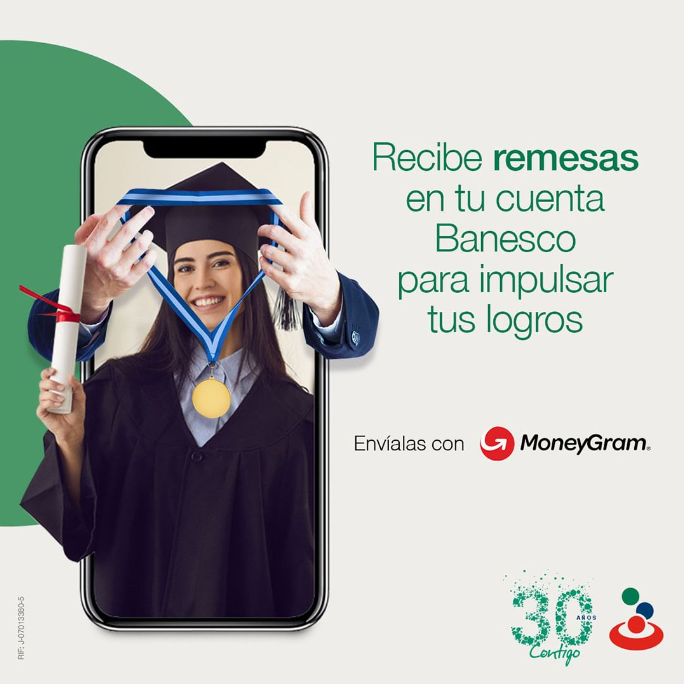 Tus familiares en el exterior quieren celebrar contigo e impulsar tus sueños. Recibe tus remesas directo en tu cuenta Banesco a través de moneygram desde más de 200 países.