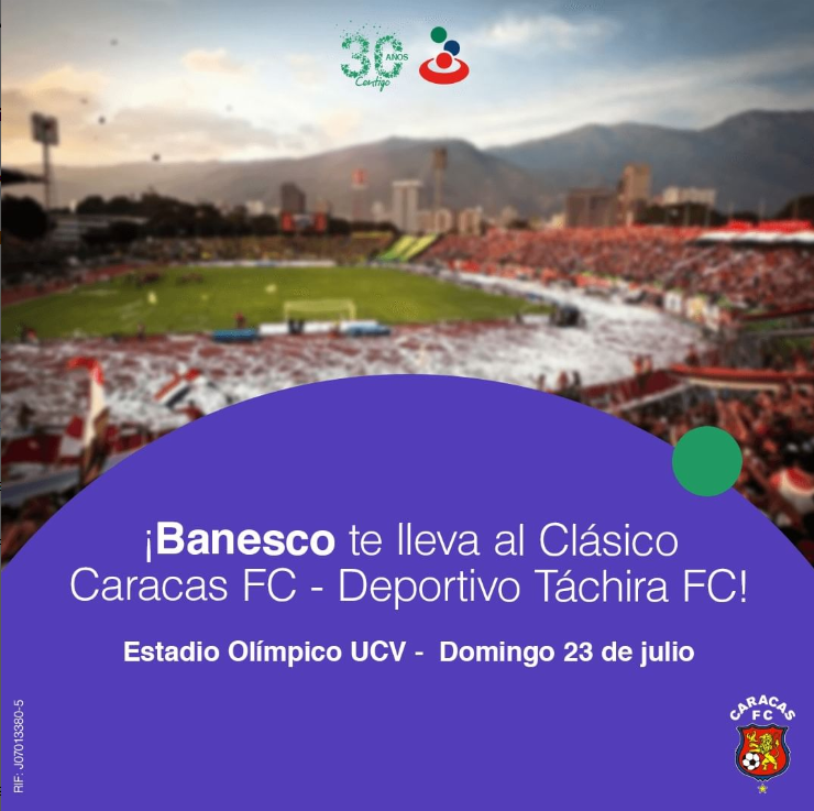 Se viene el clásico de fútbol venezolano este domingo 23 de julio y Banesco te invita a participar por boletos para asistir al partido entre el Caracas FC @caracas_fc y Deportivo Táchira @dvotachira