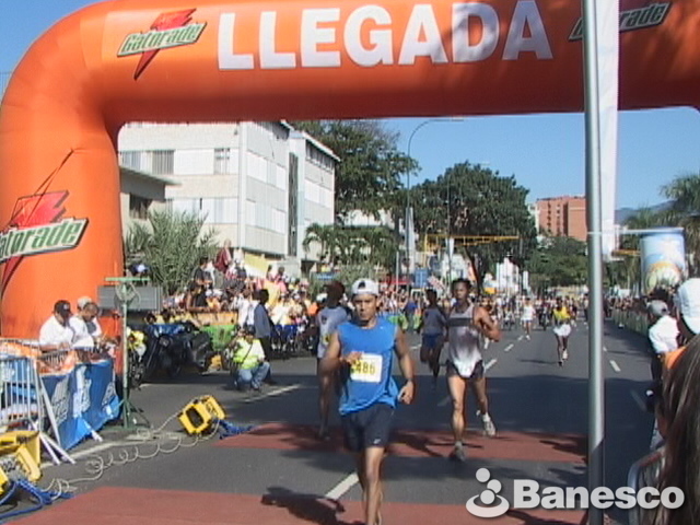 Participantes del maratón Gatorade Caracas Rock 10K cruzando la línea de llegada