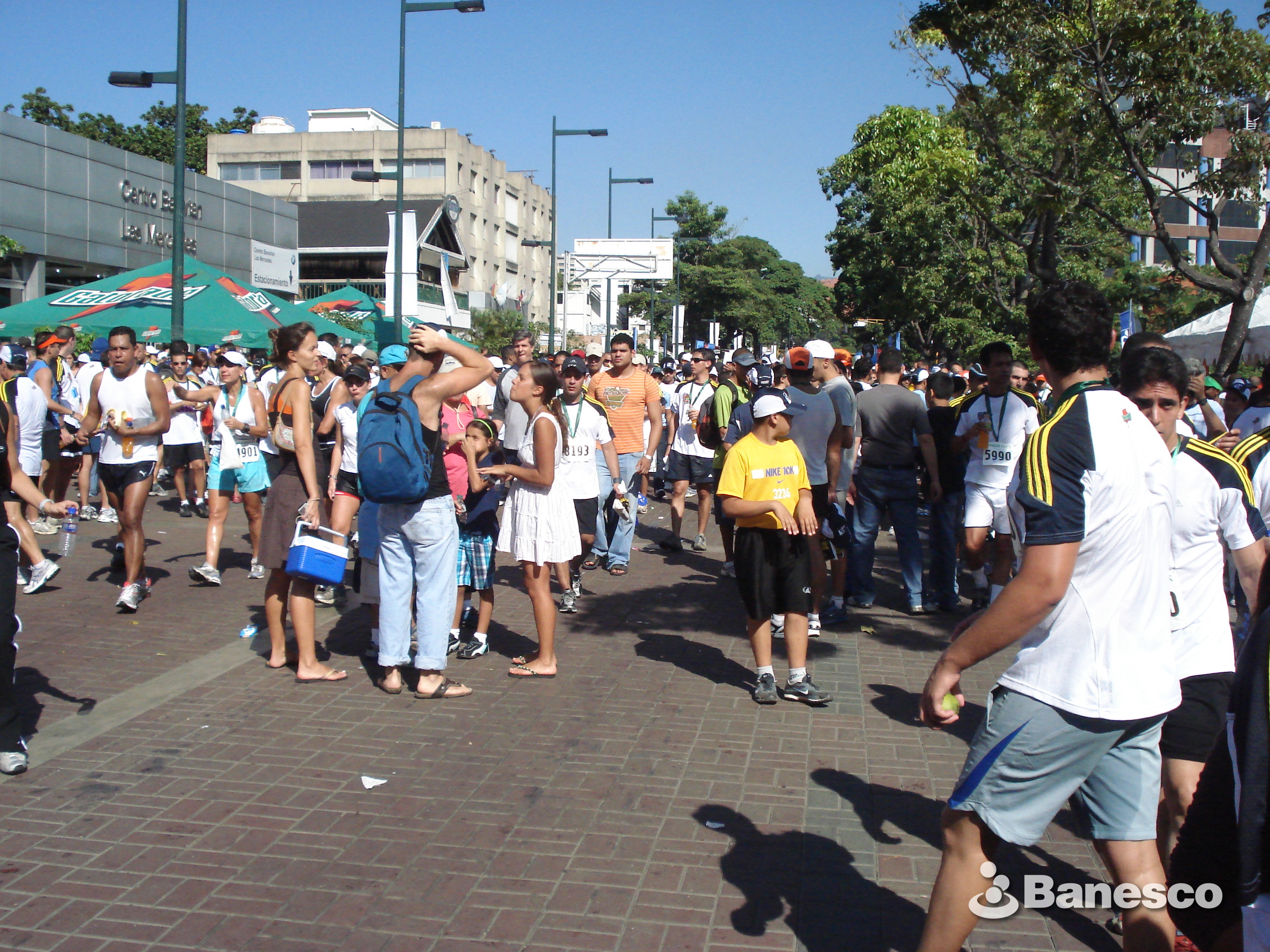Atletas descansando después del maratón, mientras caminan por el Centro Bavarian Las Mercedes