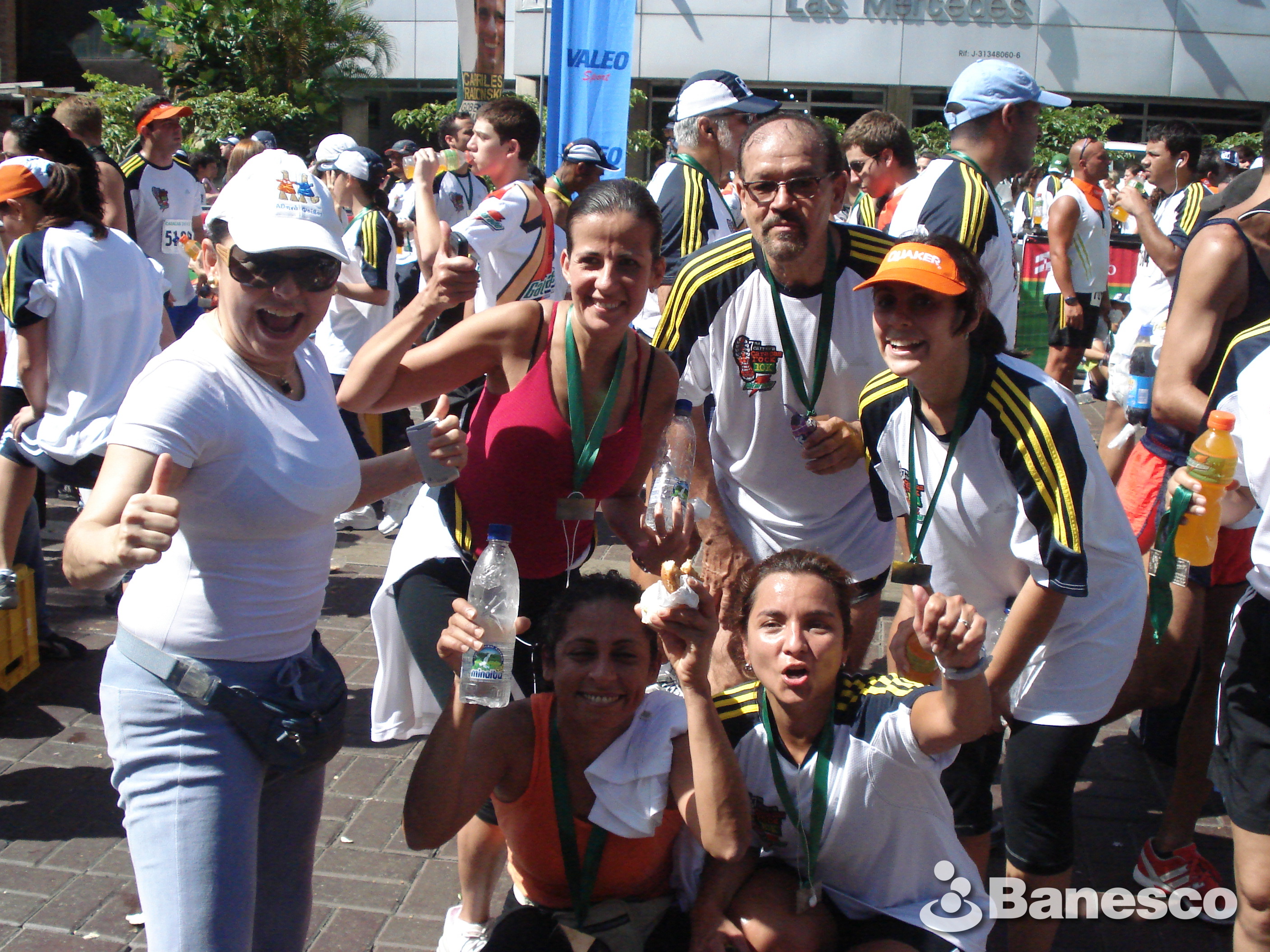 Grupo de ciudadanos Banesco festejando luego de haber recorrido 10K en el marco del maratón Gatorade Caracas Rock