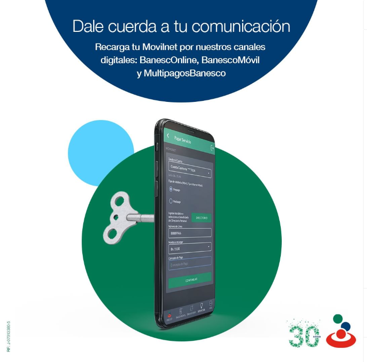 Dale cuerda a tu comunicación! Recarga tu línea Movilnet por nuestros canales digitales a través de: BanescOnline BanescoMóvil MultipagosBanesco ¡Mantente siempre conectado!