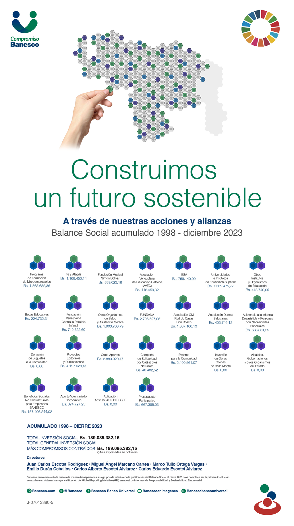 Balance Social Acumulado de Banesco Banco Universal, al cuarto trimestre del año 2023.
