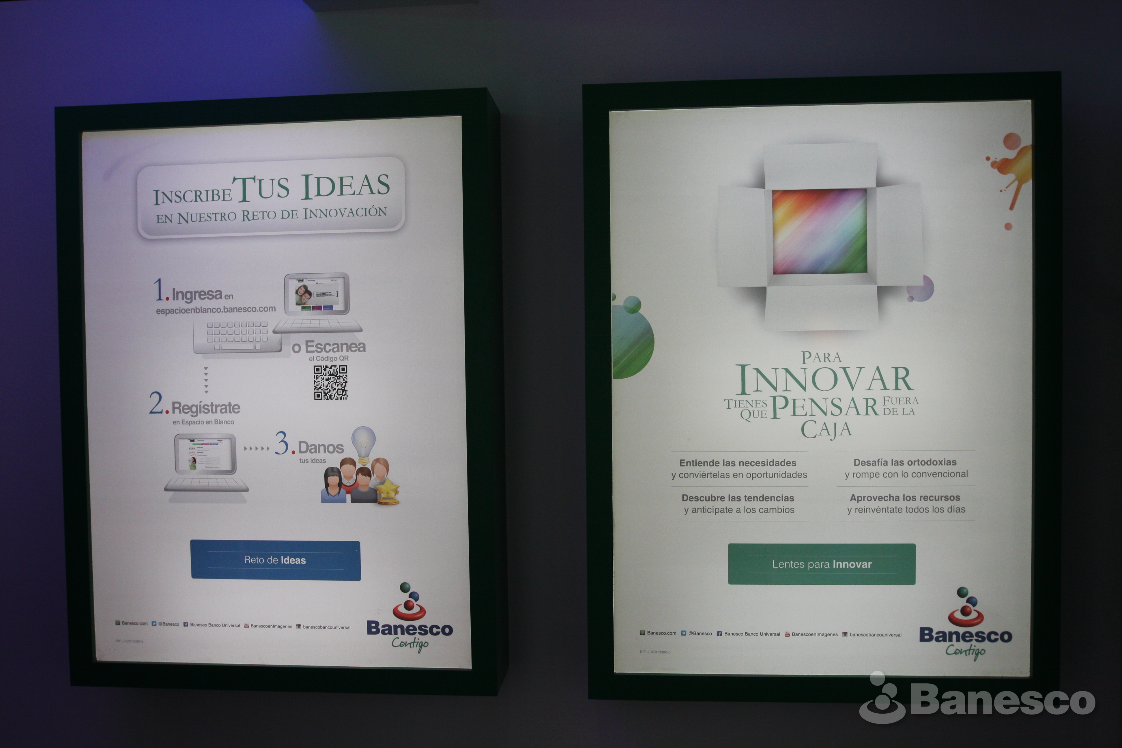 Avisos luminosos con publicidad de Banesco que formaron parte del stand colocado en la "Feria de Empleos y Pasantías" realizada en las instalaciones de la Universidad Central de Venezuela.