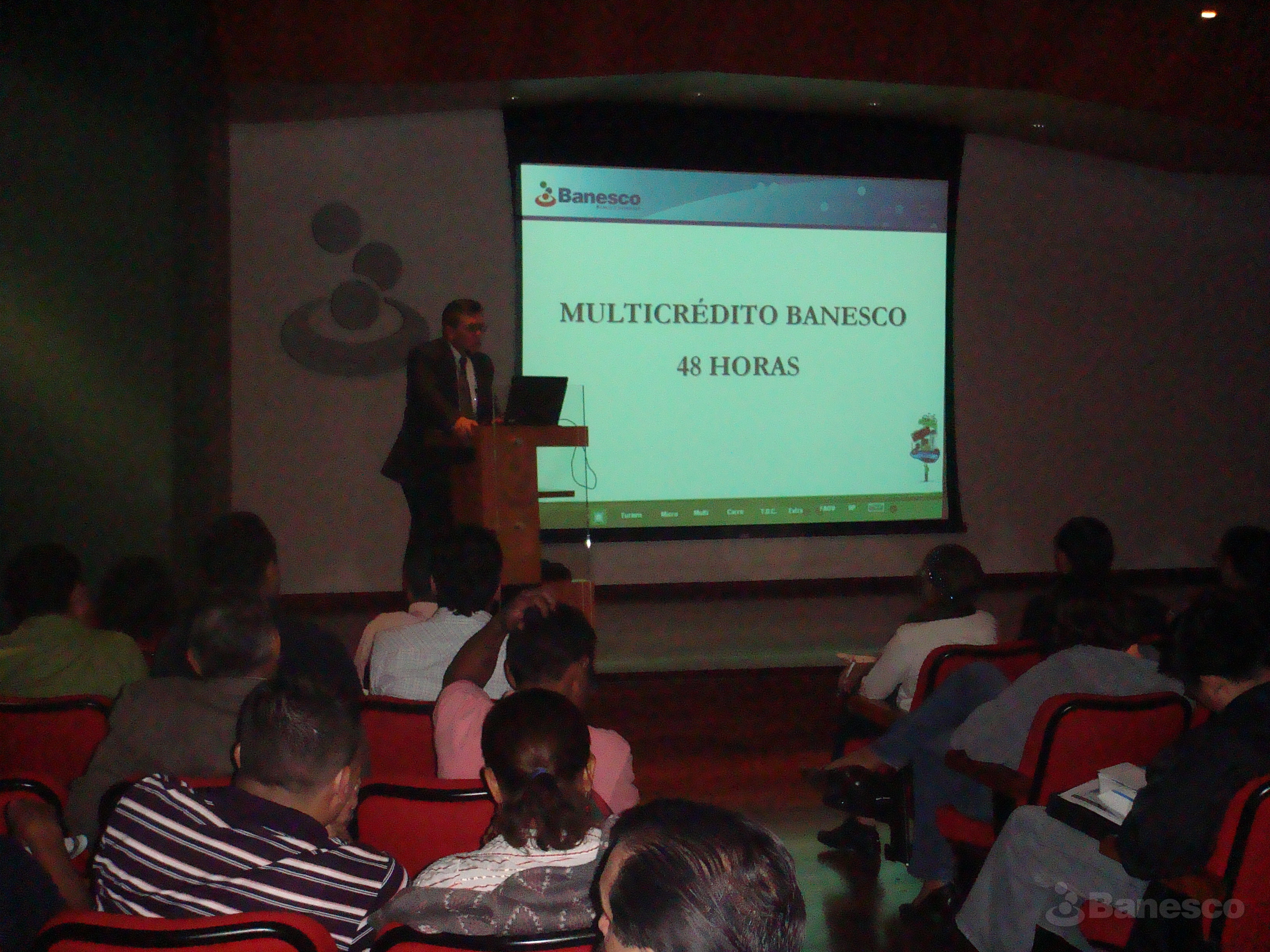 Charla sobre los beneficios de obtener el Multicrédito Banesco, dictadas al público asistente en el auditorio Fernando Crespo Suñer de Ciudad Banesco.