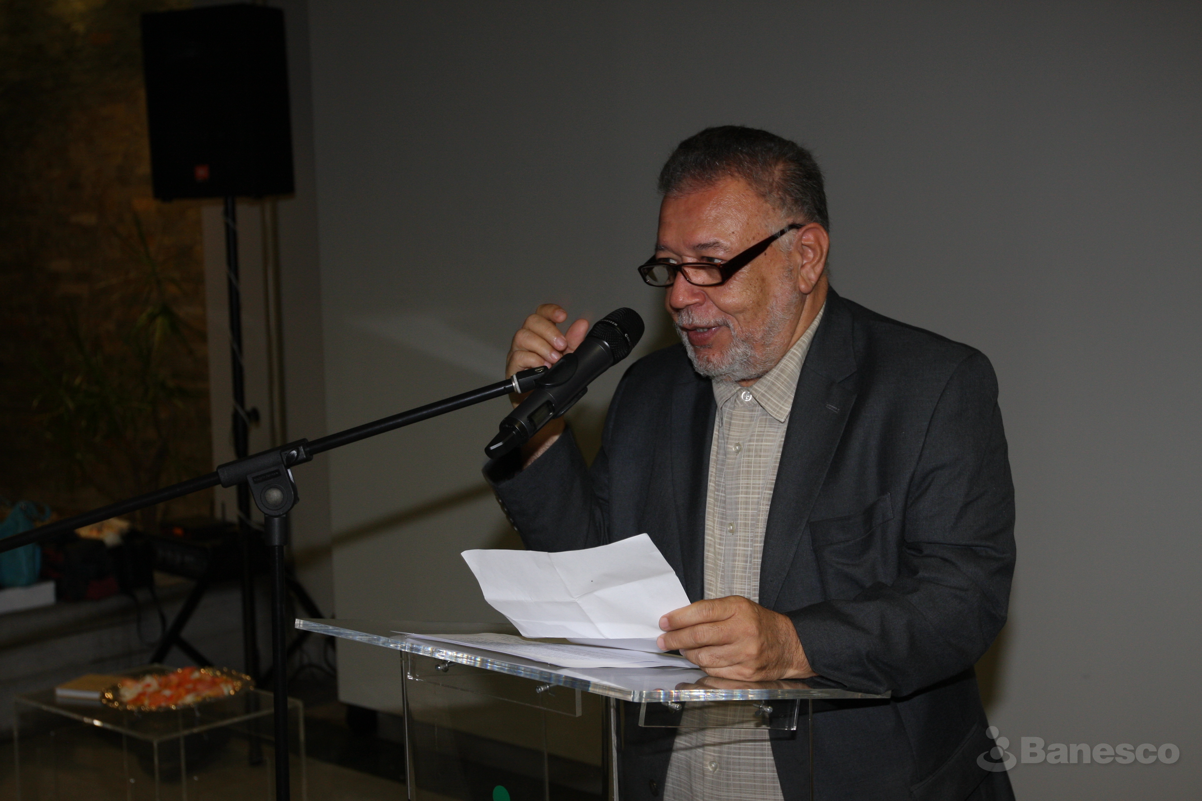 El periodista, poeta y narrador venezolano José Pulido, ofreciendo unas palabras durante el inicio de la ceremonia de presentación del libro ''Gente que Emprende'', celebrada en las instalaciones de Ciudad Banesco en la ciudad de Caracas.