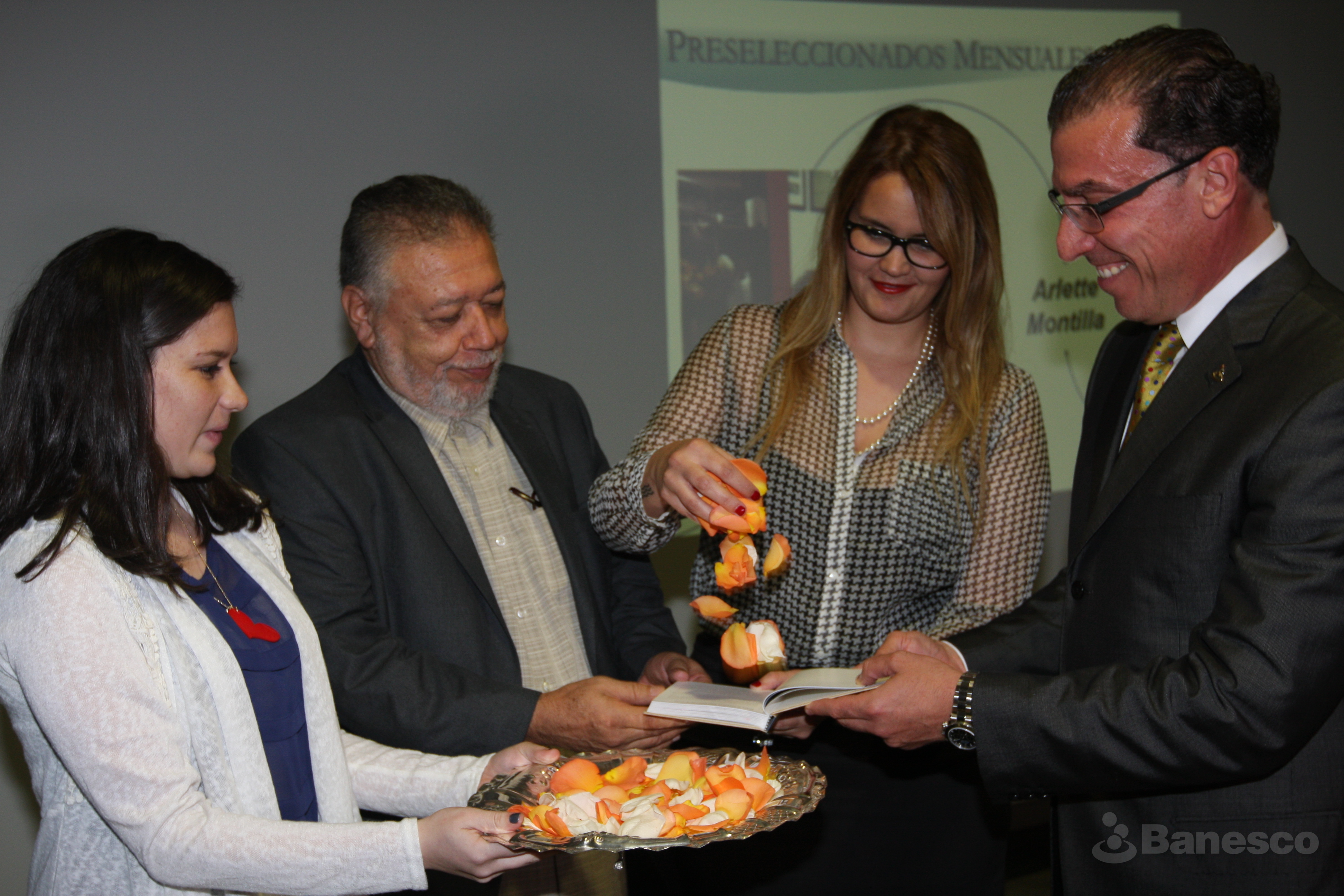 Momento en el que es bautizado el libro ''Gente que Emprende'', durante la ceremonia de presentación del nuevo libro del Fondo Editorial de Banesco Banco Universal.