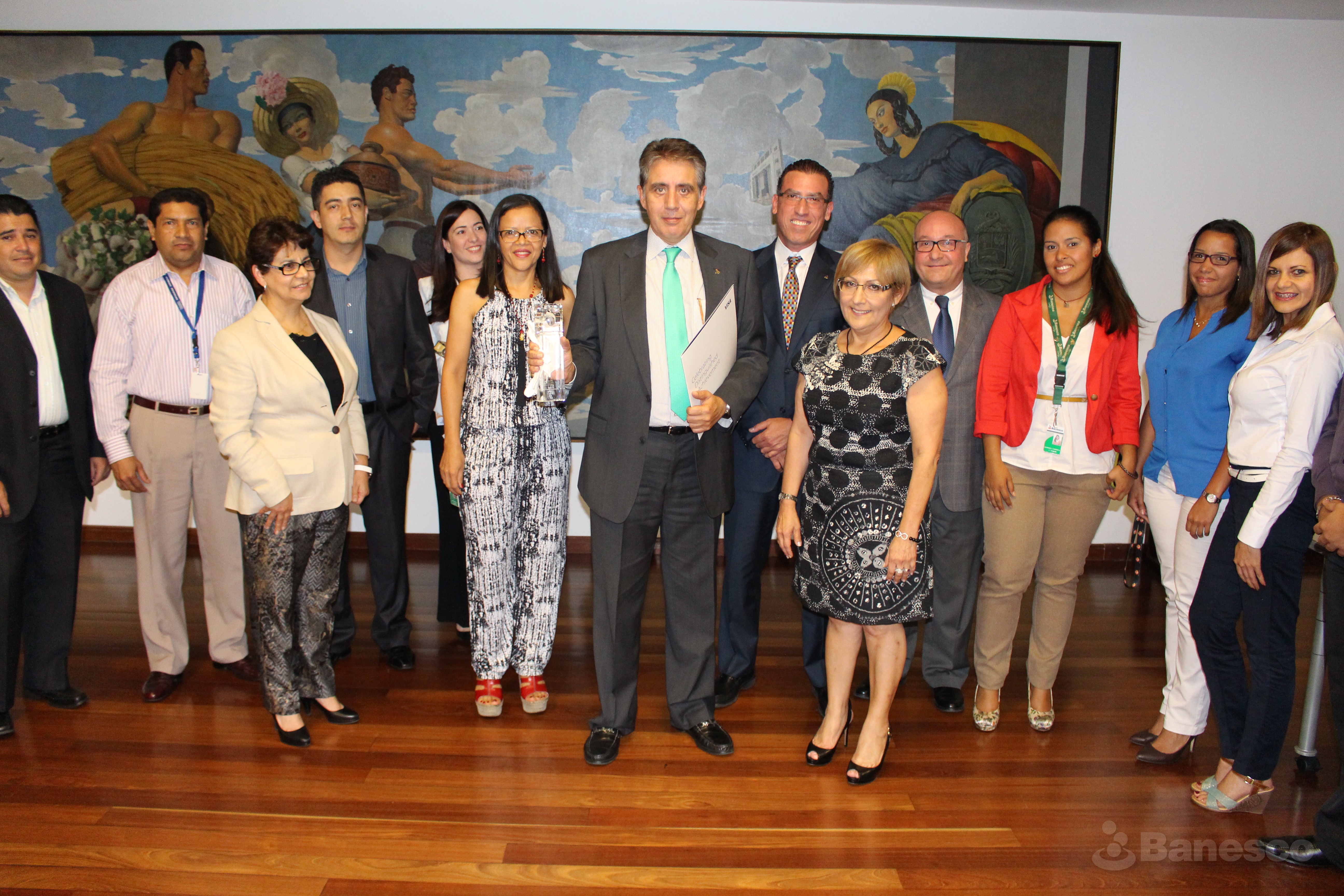 Graciela González hace entrega de reconocimiento de Visa a equipo Banesco, liderado por Carlos Lorenzo, por el Desempeño en la Calidad de Servicio de la institución bancaria.