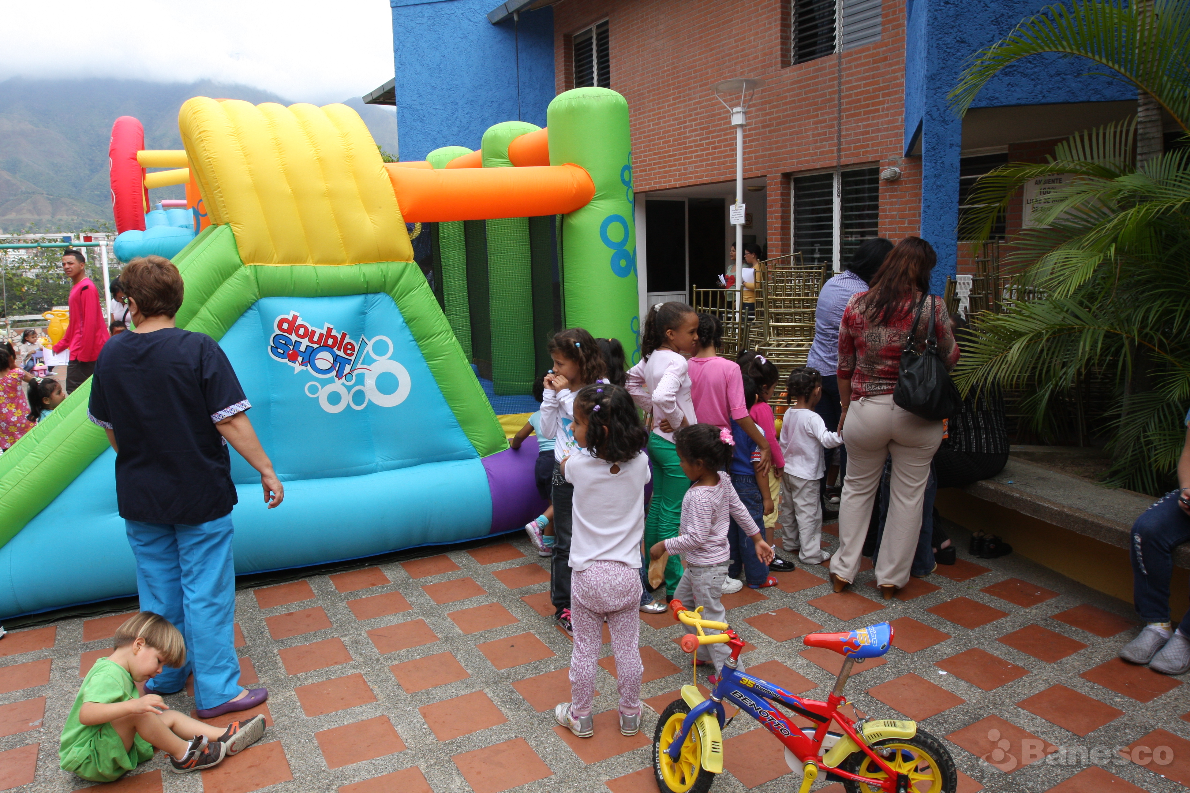 Niños en la espera para jugar en el colchón inflable durante la entrega de regalos en la Fundación Amigos del Niño (FUNDANA) para festejar la llegada de la navidad.