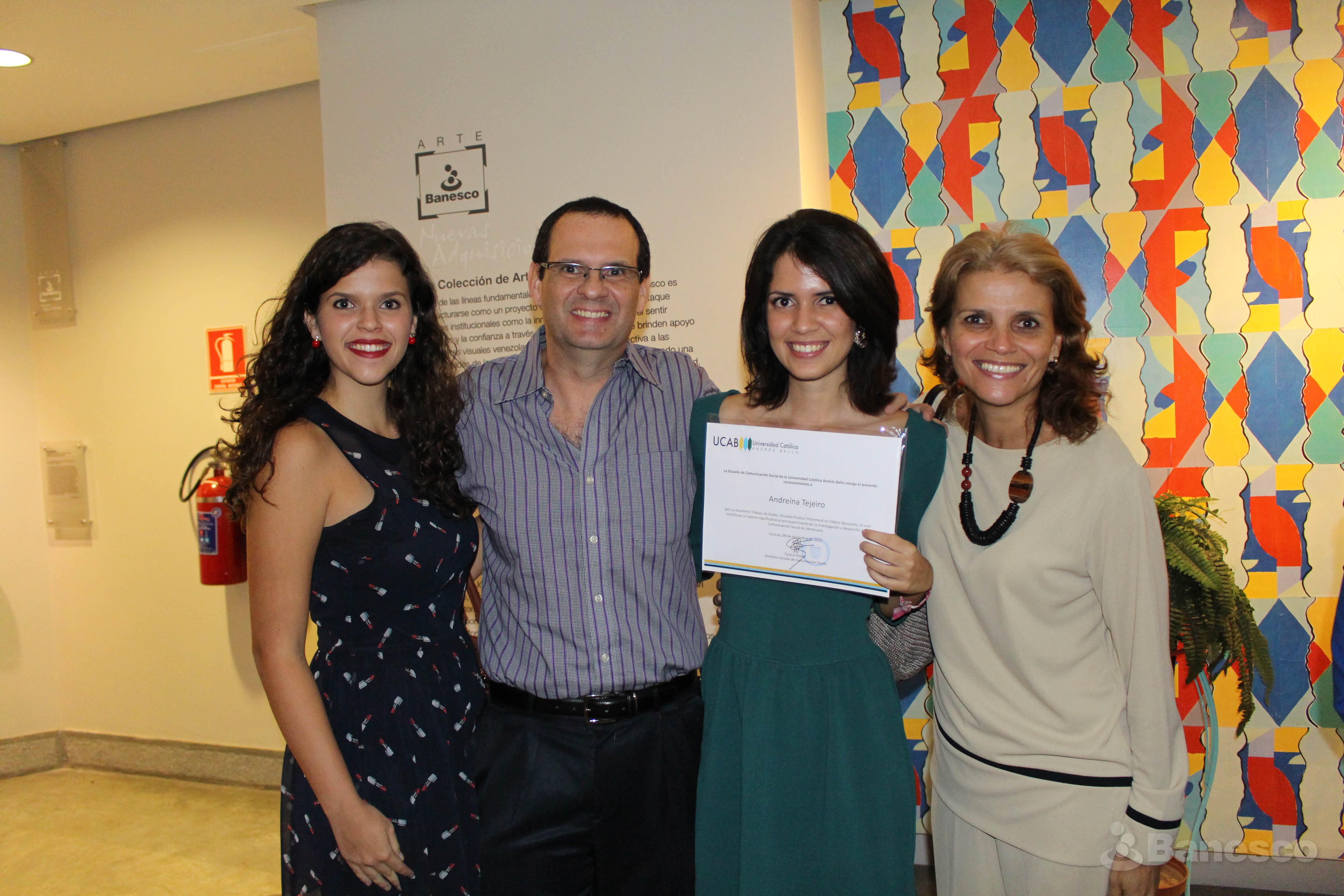 Andreína Tejeiro, una de las estudiantes beneficiadas con las becas otorgadas por Banesco Banco Universal, en convenio con la Universidad Católica Andrés Bello. La ceremonia se llevó a cabo en las instalaciones de la Ciudad Banesco en la ciudad de Caracas.