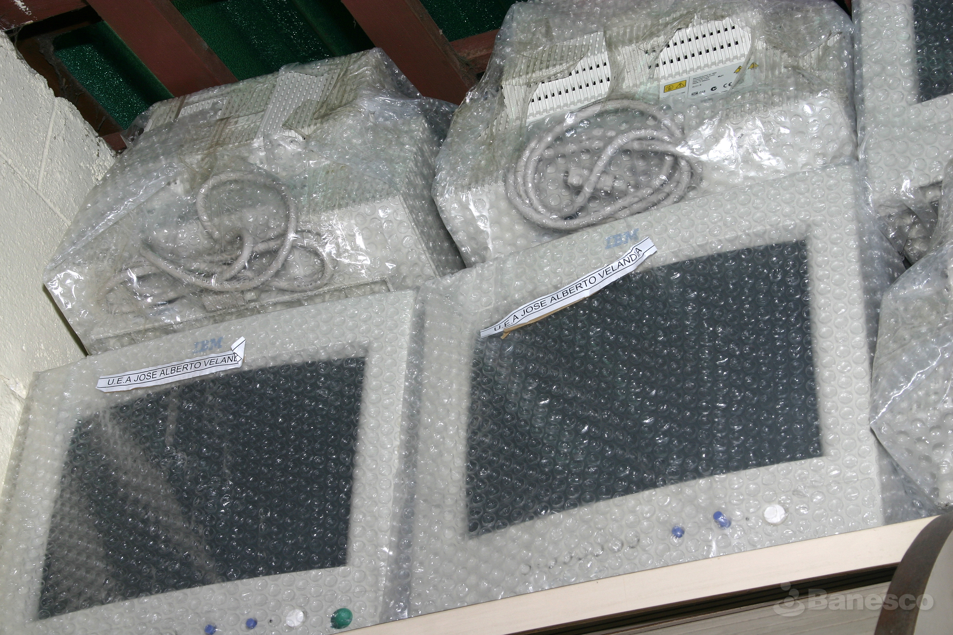 Equipos de computación donados a la U.E José Alberto Velandia, como parte del programa de Responsabilidad Social Empresarial de Banesco Banco Universal.