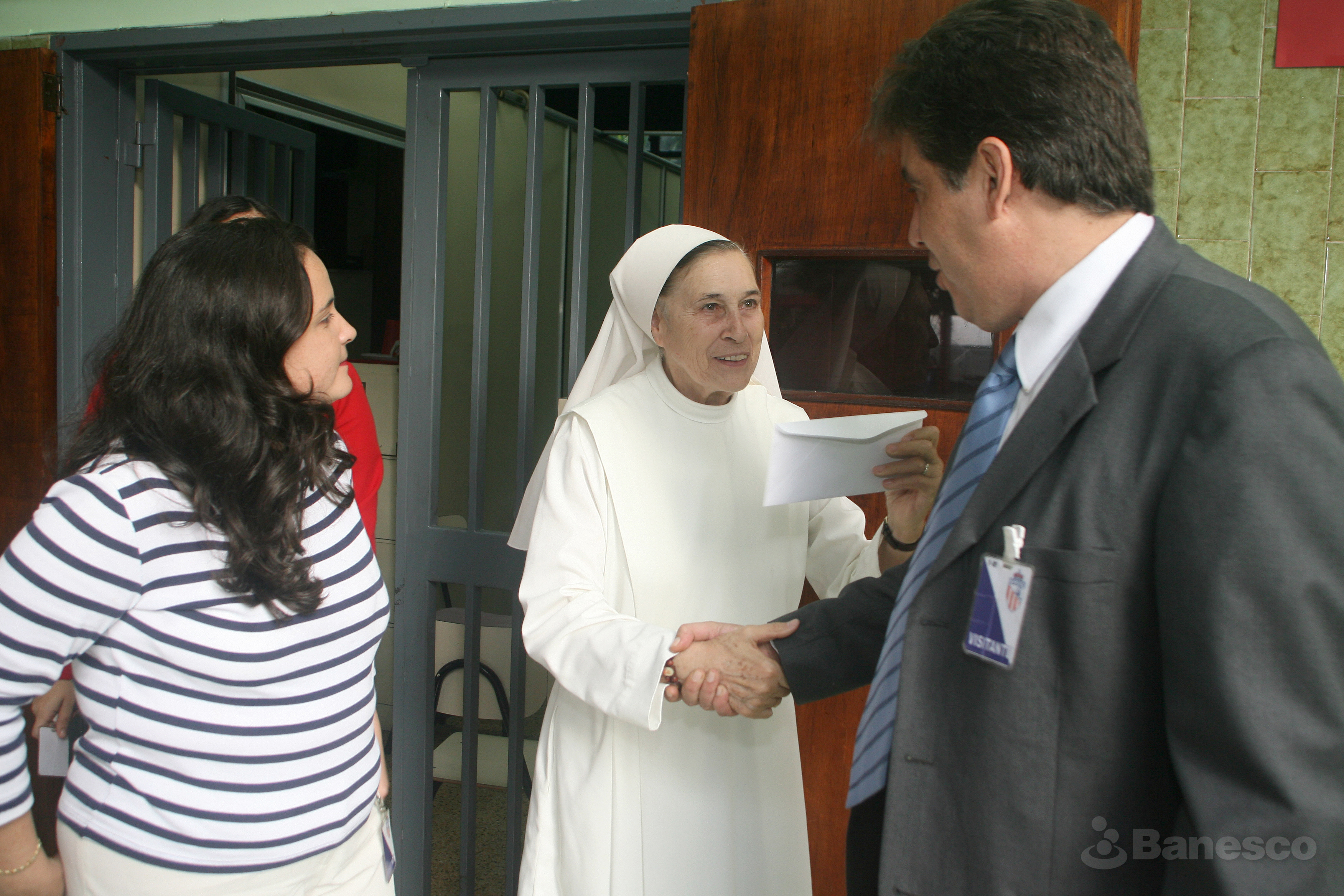 Carlos Lorenzo representante de Banesco, entrega donativo a la escuela Cristo Rey como parte del programa de Responsabilidad Social Empresarial que lleva a cabo la institución financiera.