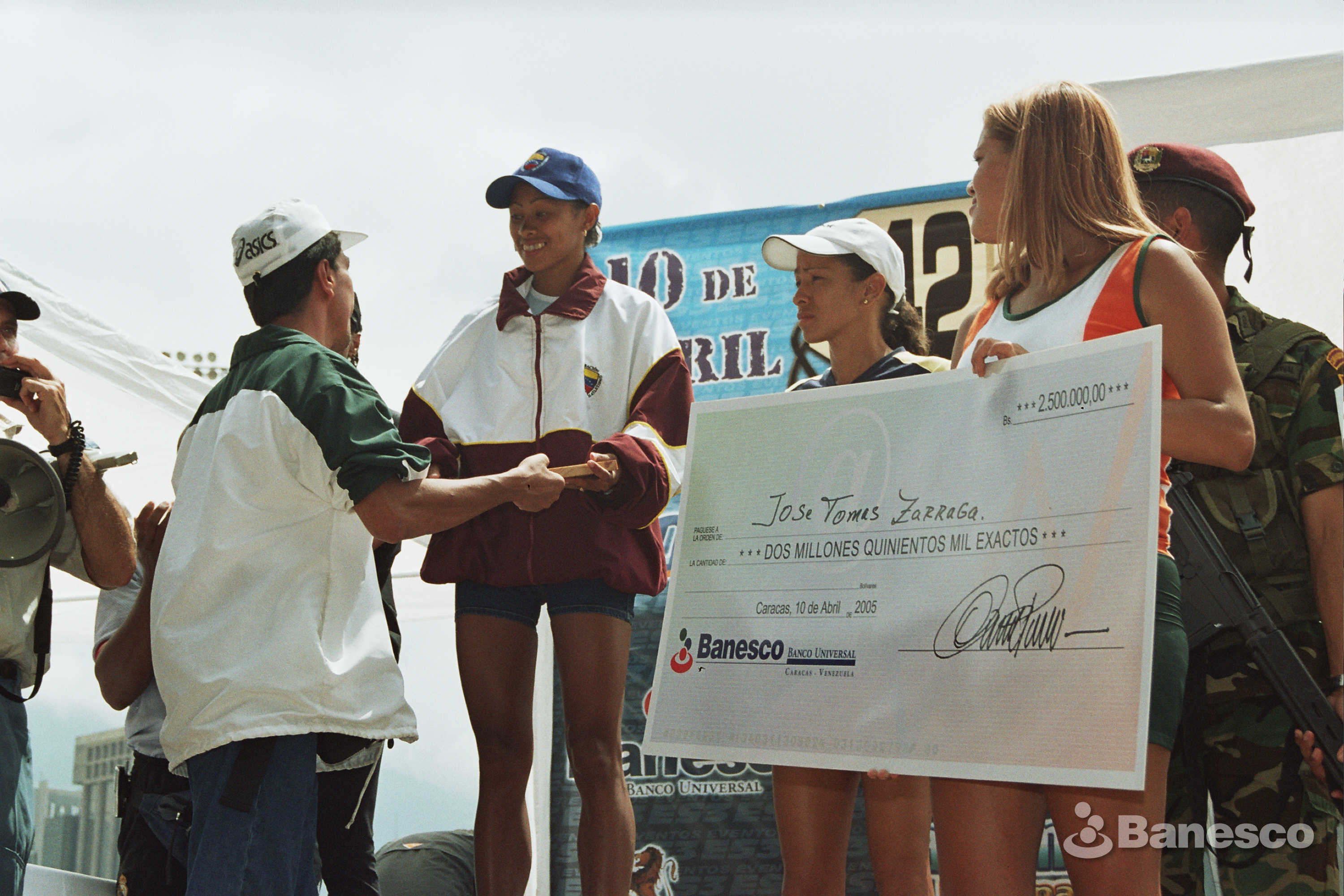 José Tomás Zarraga recibiendo cheque por un monto de dos millones quinientos mil bolívares (2.500.000,00) por su participación durante la carrera Maratón 42K.